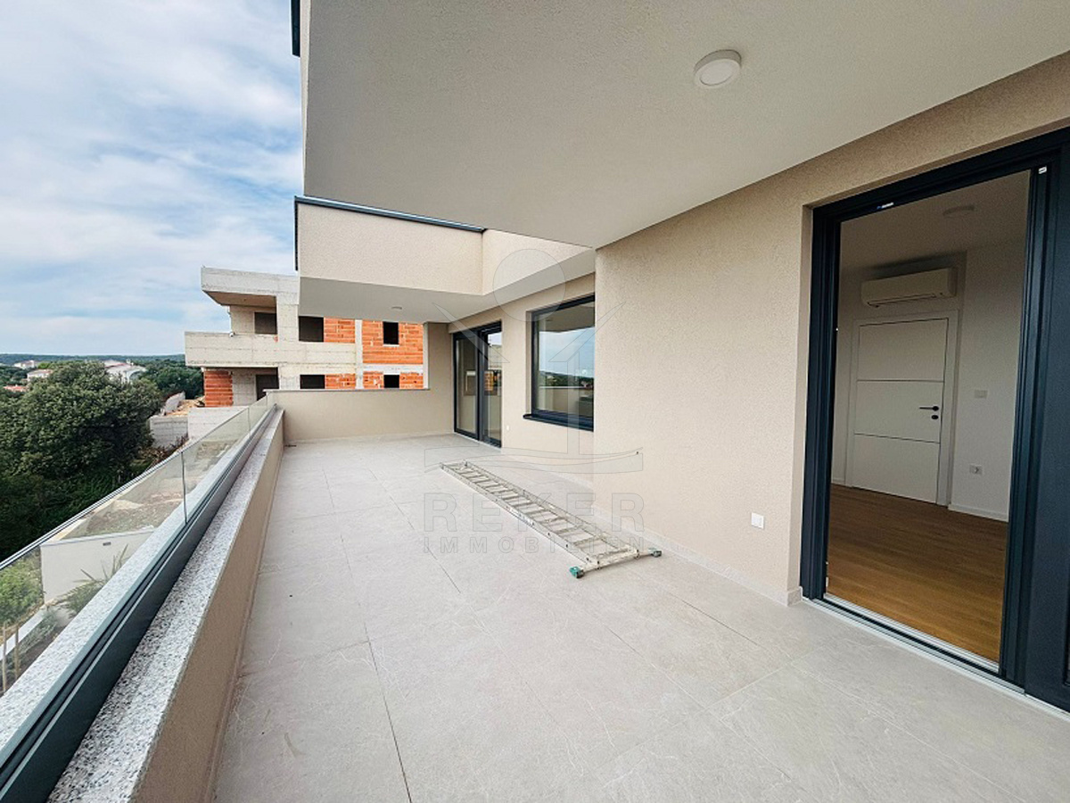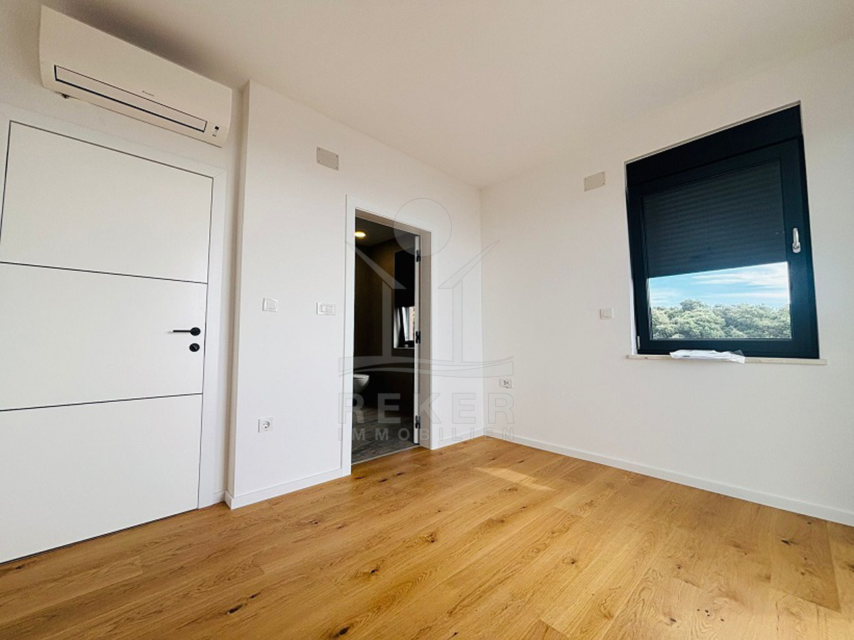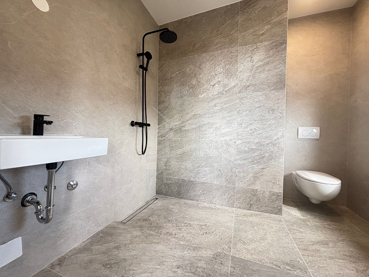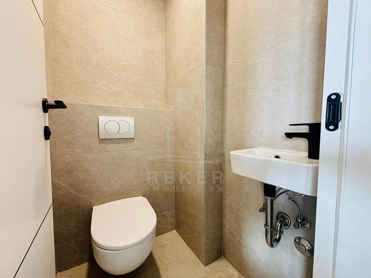 Das Haus ist frisch fertiggestellt und umfasst nur fünf Wohnungen auf drei Etagen. Die Architektur setzt auf klare Linien und moderne Formen: warme Naturtöne, Flachdach, großzügige Terrassen. Vor dem Eingang gibt es markierte Parkplätze. Auf der Rückseite wurde das Grundstück terrassiert und gestaltet mit jungen Bäumen, mediterranen Sträuchern und hellen Steinen. Dank der Hanglage genießen Sie schöne Ausblicke und viel Tageslicht. Der Zugang erfolgt bequem über das zentrale Treppenhaus. Alles ist neu, unbewohnt und bereit für den Erstbezug 2025.