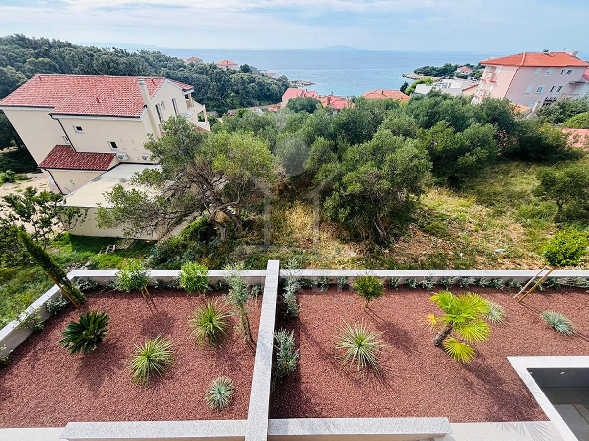 Zwischen Olivenhainen, Pinien und dem türkisblauen Meer wartet in Jakišnica auf der Insel Pag ein besonderes Zuhause. Der kleine Küstenort ist ruhig, die Straße vor dem Haus fast ohne Verkehr. Die Stimmung: entspannt, unaufgeregt. Zur Bucht gehen Sie nur wenige Minuten, dort treffen sich kristallklares Meer und ein kleiner Hafen. Je nach Etage öffnet sich der Blick direkt aus dem Fenster oder von der Terrasse. Rundherum viel Grün, lockere Bebauung. Keine Hotelburgen, kein Lärm.