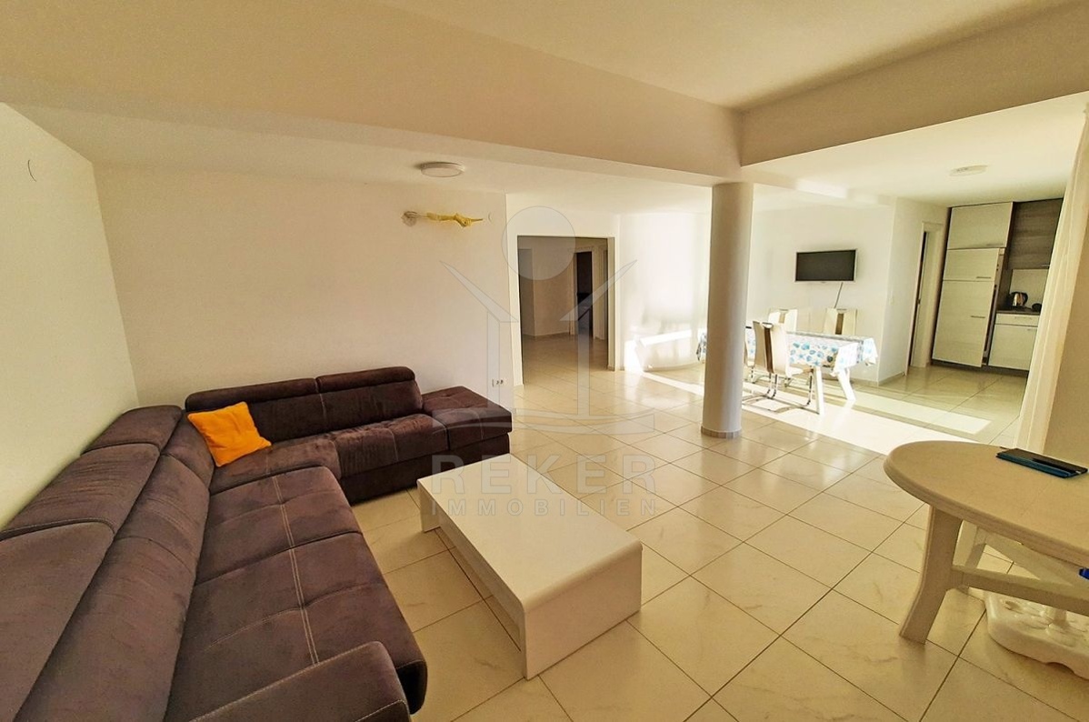Die großzügige 130 m² Wohnung bietet ein Wohnzimmer, eine offene Küche mit Essbereich, drei geräumige Schlafzimmer, ein stilvolles Bad, eine separate Toilette, Abstellraum, Speisekammer, einen Balkon und eine Terrasse. Die hochwertige Konstruktion mit Klimaanlage sorgt für ein angenehmes Wohnklima.