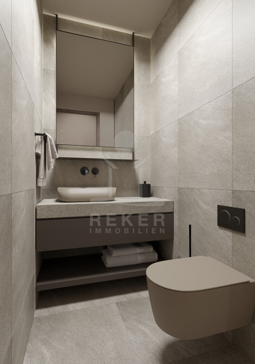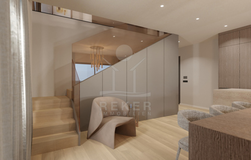 Das Gebäude ist Teil einer edlen, geschlossenen Wohnanlage mit fünf Häusern. Sie erinnert an ein kleines Dorf. Zwei separate Treppenhäuser strukturieren die neun Wohnungen klar und sorgen für angenehme Privatsphäre. Jede Einheit verfügt über zwei Außenstellplätze und einen eigenen Abstellraum, praktisch und komfortabel. Gepflegte Grünflächen rahmen das Ensemble ein und unterstreichen den ruhigen, hochwertigen Charakter. Die Fertigstellung ist für das Frühjahr 2026 vorgesehen.
