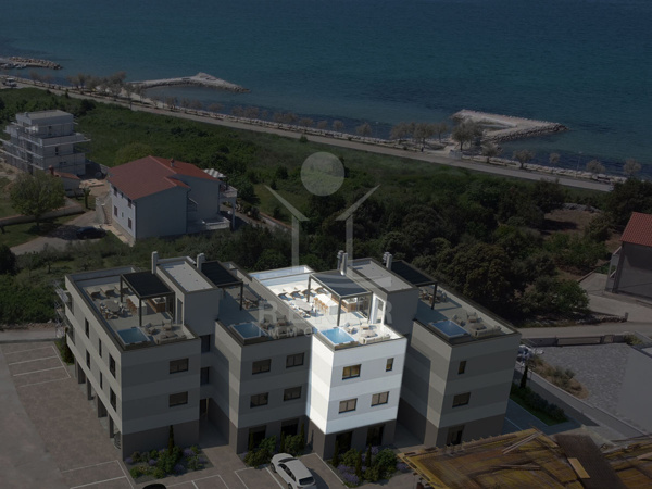 In Zaton, einem charmanten Ortsteil bei Nin, entsteht ein hochwertiges Neubauprojekt, nur rund 100 Meter vom Meer entfernt. Die Anlage fügt sich harmonisch in das mediterrane Umfeld ein und eröffnet dank ihrer erhöhten Position einen weiten Blick auf die vorgelagerten Inseln und die Bucht von Zadar. Die Nähe zur Küste und die ruhige Nachbarschaft verleihen dem Ort eine Atmosphäre von Beständigkeit und Exklusivität.