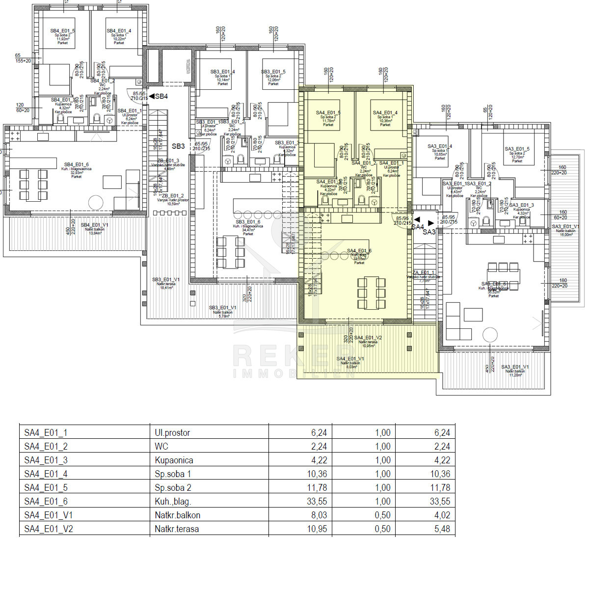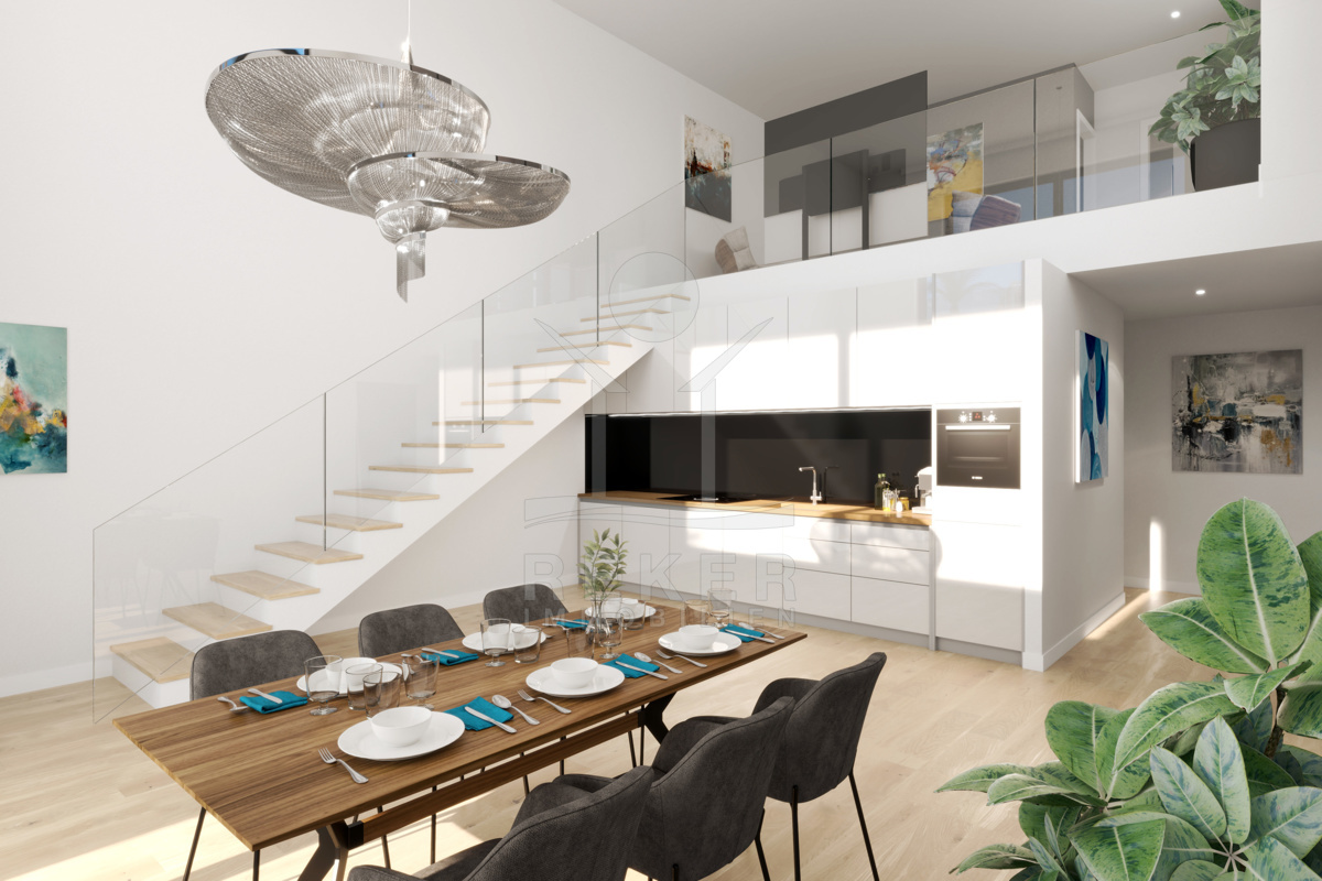 Die beeindruckende Wohnung bietet eine großzügige Wohnfläche von 192 m², die durch eine durchdachte Raumaufteilung glänzt. Im 1. Stock erwartet Sie ein offener Wohn-, Ess- und Küchenbereich, ergänzt durch zwei einladende Schlafzimmer sowie ein Badezimmer und ein Gäste-WC. Eine überdachte Terrasse mit 19 m² lädt zum Entspannen im Freien ein.