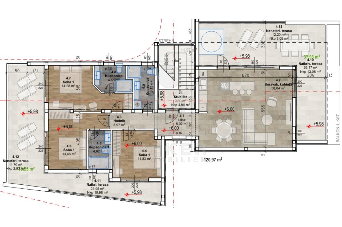 Mit beeindruckenden 173 m² Wohnfläche bietet diese riesige Wohnung ein einzigartiges Wohnambiente. Ein einladender Eingangsbereich führt in ein offenes Wohnzimmer, das nahtlos mit der modernen Küche und dem Esszimmer verbunden ist. Hier erleben Sie ein Gefühl von Weite und Licht. Die Wohnung verfügt über drei großzügige Schlafzimmer, die mit eigenen Badezimmern ausgestattet sind. Jedes Schlafzimmer bietet direkten Zugang zu einer überdachten Terrasse von 38 m², die ideal für entspannte Stunden im Freien ist.