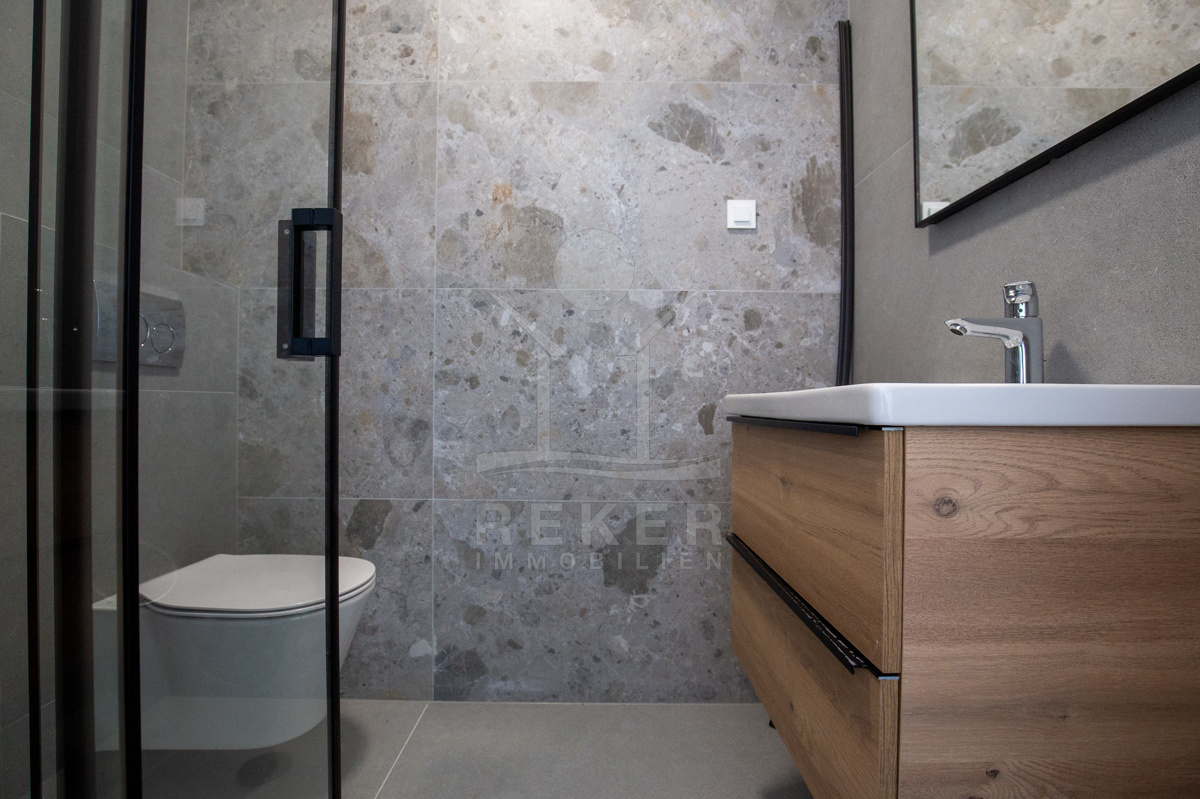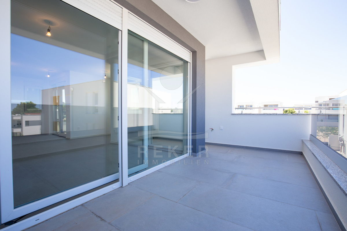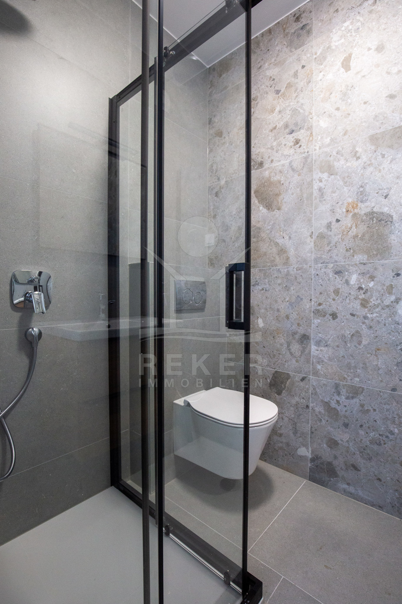 Die 95 m² große Wohnung besticht durch eine großzügige Raumaufteilung mit Küche, Esszimmer, Wohnzimmer, drei Badezimmern und zwei Schlafzimmern. Ein absolutes Highlight sind die drei Terrassen (26 m²), die genügend Platz im Freien bieten, um die fantastische Aussicht auf das Meer und die Umgebung zu genießen. Diese moderne Luxusimmobilie bietet nicht nur ein stilvolles Ambiente, sondern auch Raum für Entspannung und Erholung.