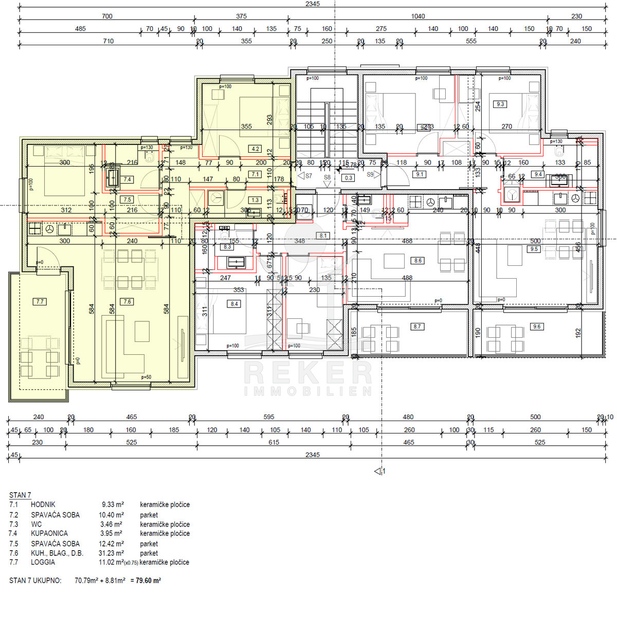 Genießen Sie die überdachte Loggia mit 9 m², ideal für entspannte Stunden im Freien. Die Dachterrasse von 80 m² ist der perfekte Aufenthaltsort, um die Freizeit zu verbringen und den herrlichen Meerblick zu bewundern. Hier erleben Sie unvergessliche Momente unter freiem Himmel.