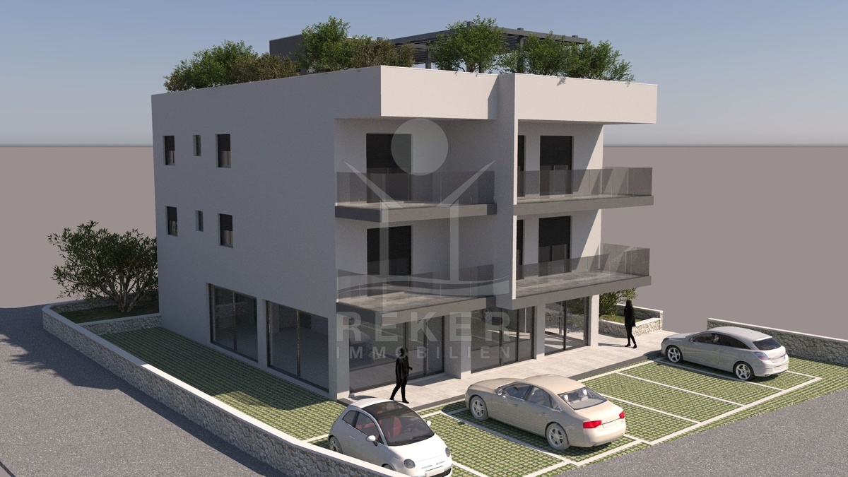Die Immobilie befindet sich im 2. Stock eines ansprechenden Gebäudes mit insgesamt 4 Wohnungen, die über 2 Etagen verteilt sind. Im Erdgeschoss ist ein Geschäftsraum vorgesehen. Die Wohnung wird mit einer Vielzahl moderner Annehmlichkeiten ausgestattet, darunter Fußbodenheizung im Wohnzimmer und Küchenbereich sowie Klimaanlagen in jedem Raum. Große Fenster und Balkontüren sorgen für viel Tageslicht und werden mit elektrischen Jalousien und Mückennetzen ausgestattet, um sowohl Komfort als auch Sicherheit zu gewährleisten. Die Bauarbeiten sind bereits im Gange, und die Fertigstellung wird für Februar 2025 erwartet. Ein Parkplatz pro Wohnung ist im Preis inbegriffen, was den Alltag erheblich erleichtert, da Sie sich keine Sorgen um die Parkplatzsuche machen müssen.