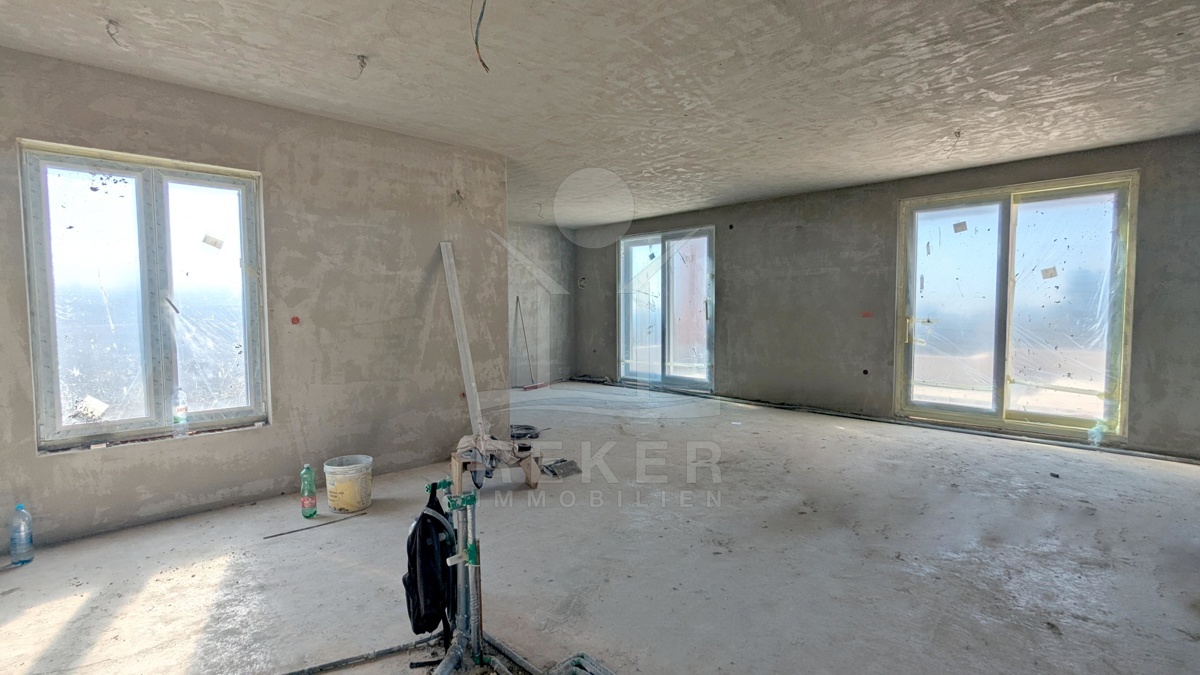 Das Penthouse-Apartment befindet sich in einem exklusiven Neubau mit insgesamt 5 Wohnungen und erstreckt sich über den 2. Stock. Die hochwertige Bauweise zeichnet sich durch Annehmlichkeiten wie elektrische Fußbodenheizung, Kamin, Klimaanlage, elektrische Jalousien, dreifache PVC-Fenster mit Moskitonetzen, Photovoltaikzellen in der 1. Phase, Wärmepumpe und 10 cm Isolierung der Außenwände aus. Die Bauarbeiten werden voraussichtlich im Dezember 2025 abgeschlossen sein, was dieses Apartment zu einer zukunftsweisenden Wahl macht. Zwei Parkplatz stehen den Bewohnern zur Verfügung.