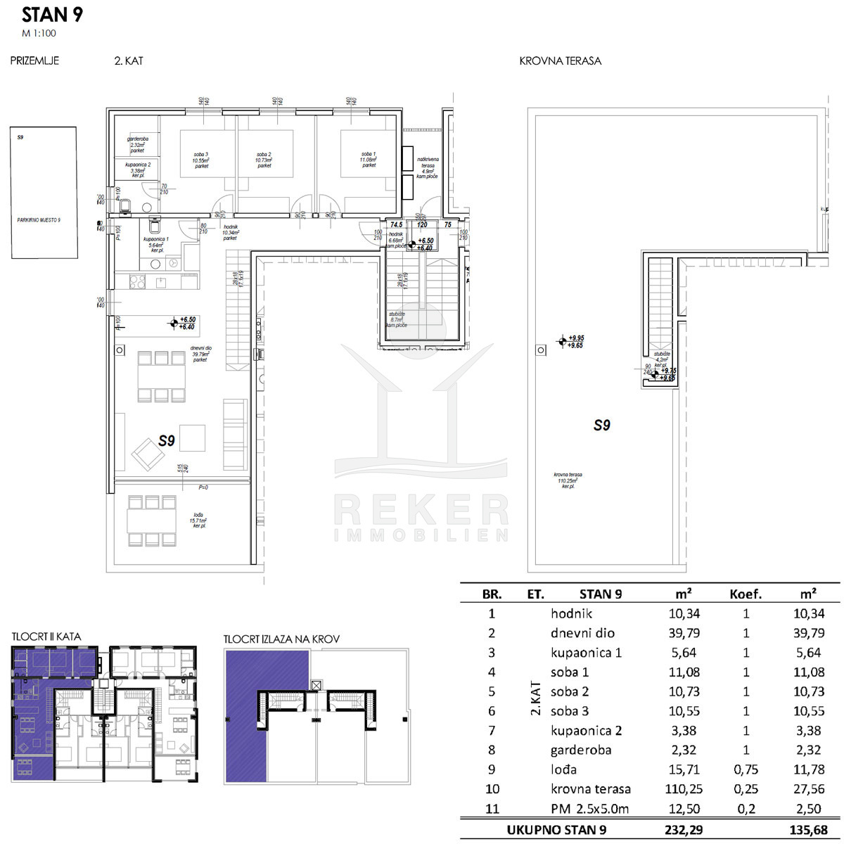 94 m² innen, 110 m² oben – auf der Dachterrasse. Drei Schlafzimmer, zwei Bäder, ein großer Wohnbereich mit Licht und Luft. Die Loggia bringt das Draußen nach drinnen. Und die Aussicht? Geht direkt aufs Meer. Stilvoll wohnen, technisch top Fußbodenheizung, Klimaanlage, elektrische Jalousien. Moskitonetze an allen PVC-Fenstern. Hochwertige Materialien.