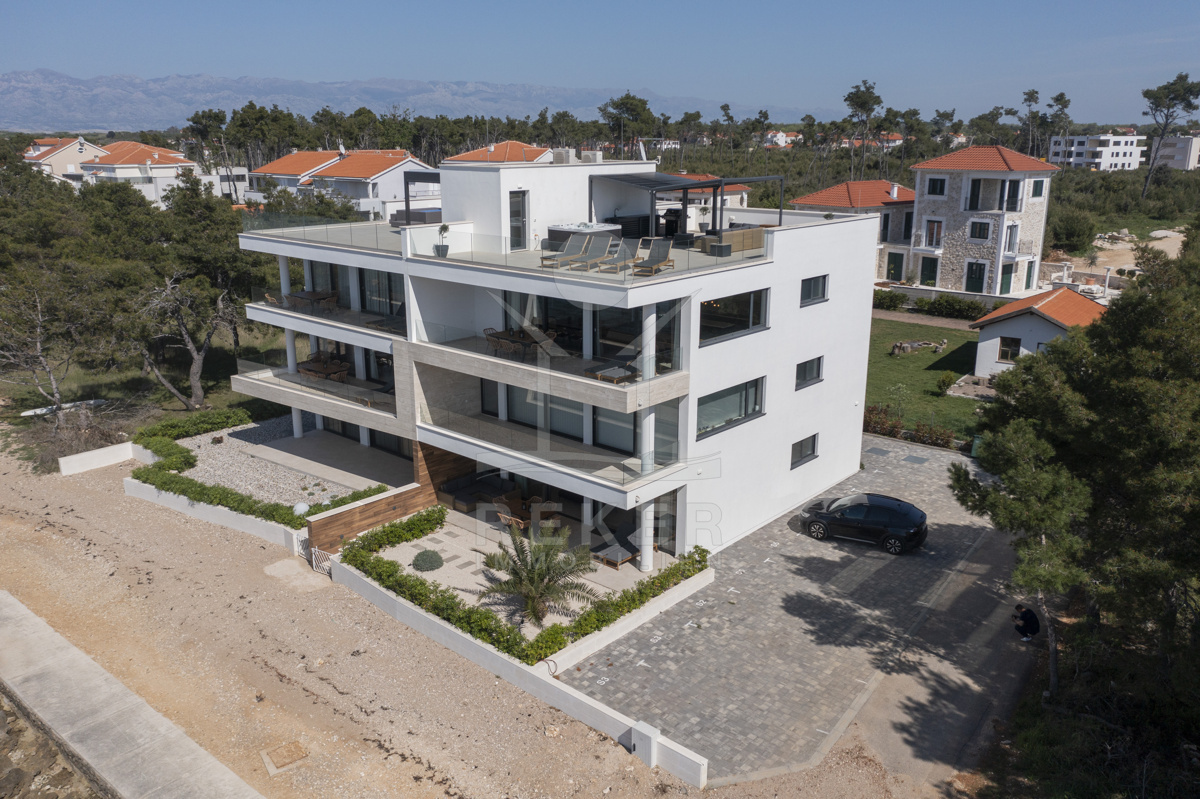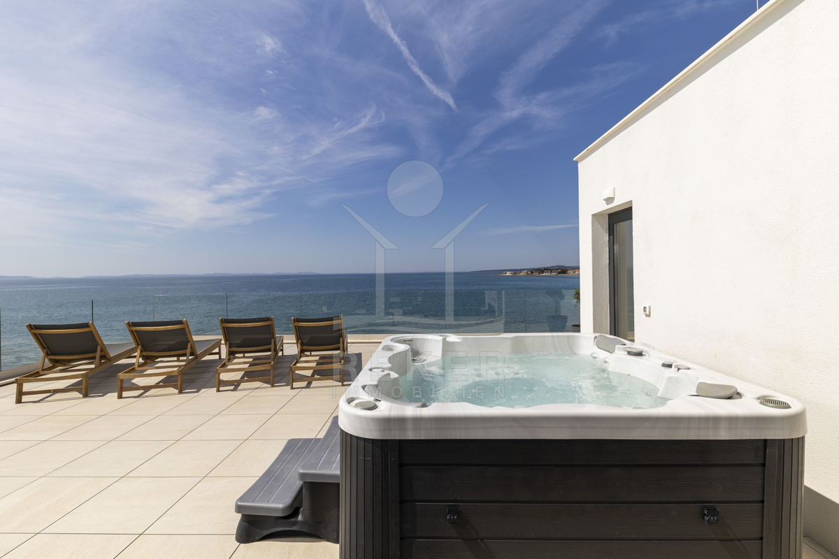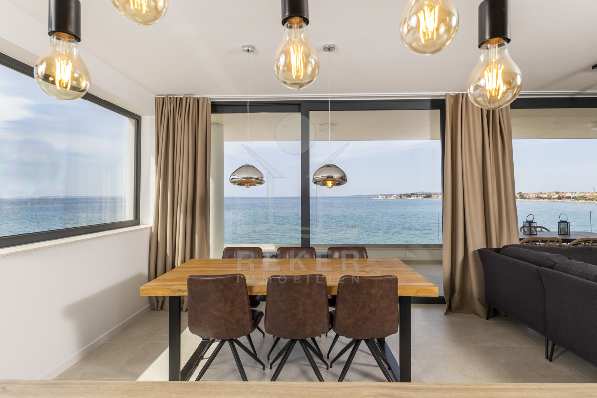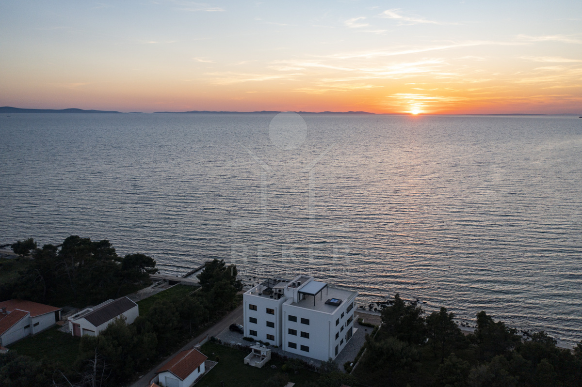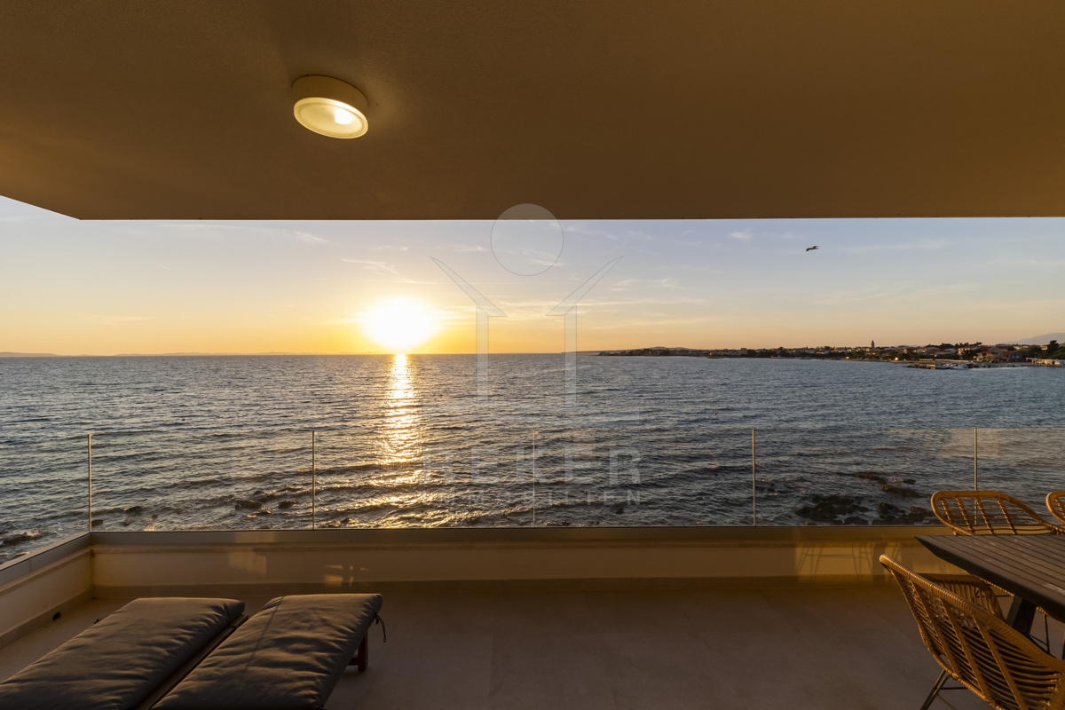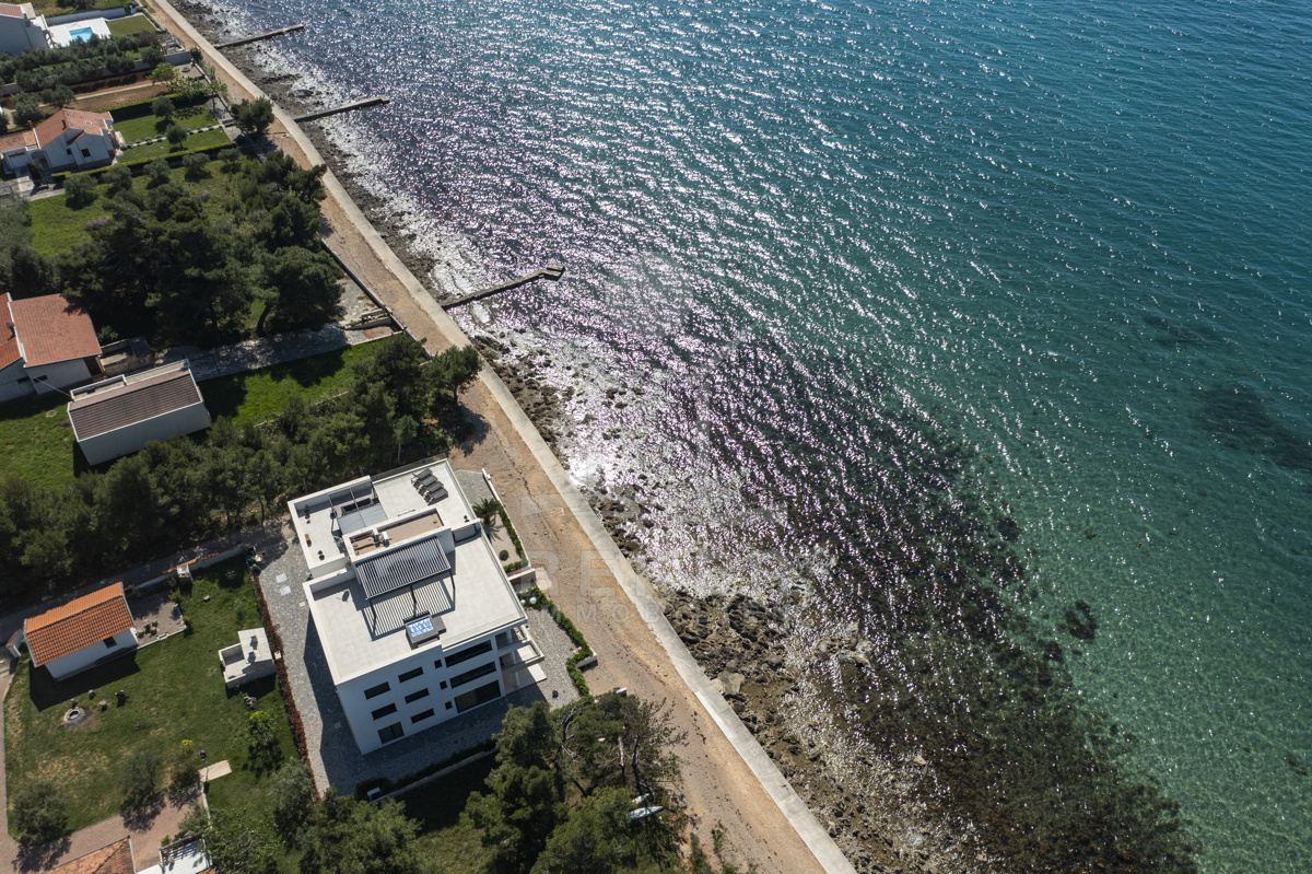 Nur fünf Meter vom Meer entfernt befindet sich dieses exklusive Penthouse in erster Reihe von Privlaka, einem der schönsten Küstenorte Norddalmatiens. Das moderne Gebäude steht direkt an der Uferpromenade, in ruhiger Umgebung, und verfügt über einen privaten Stellplatz (14,19 m²). Hier verbinden sich Meeresnähe und Wohnkomfort auf besondere Weise.