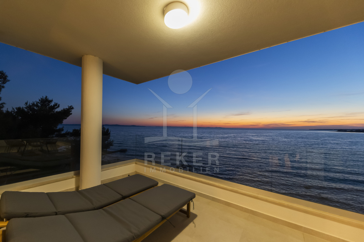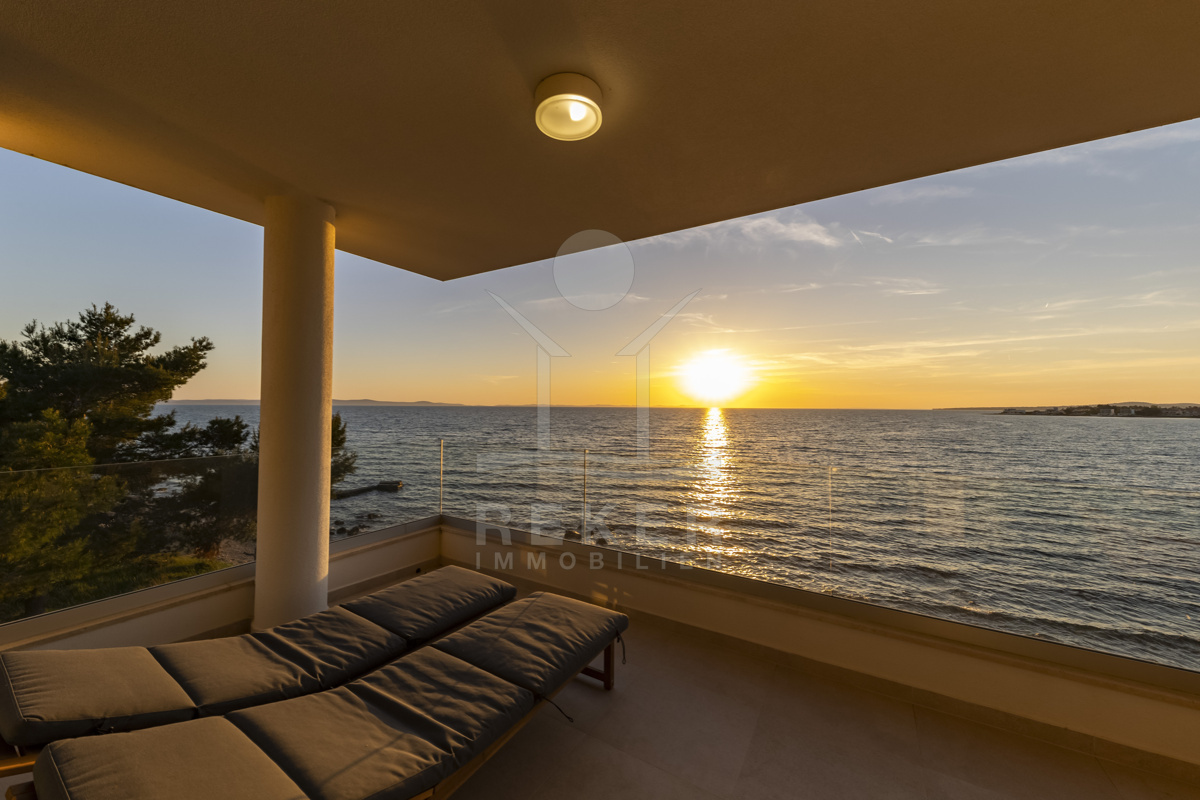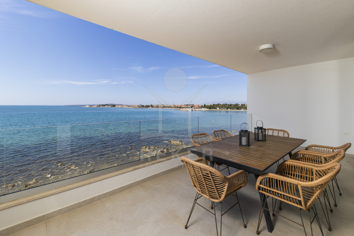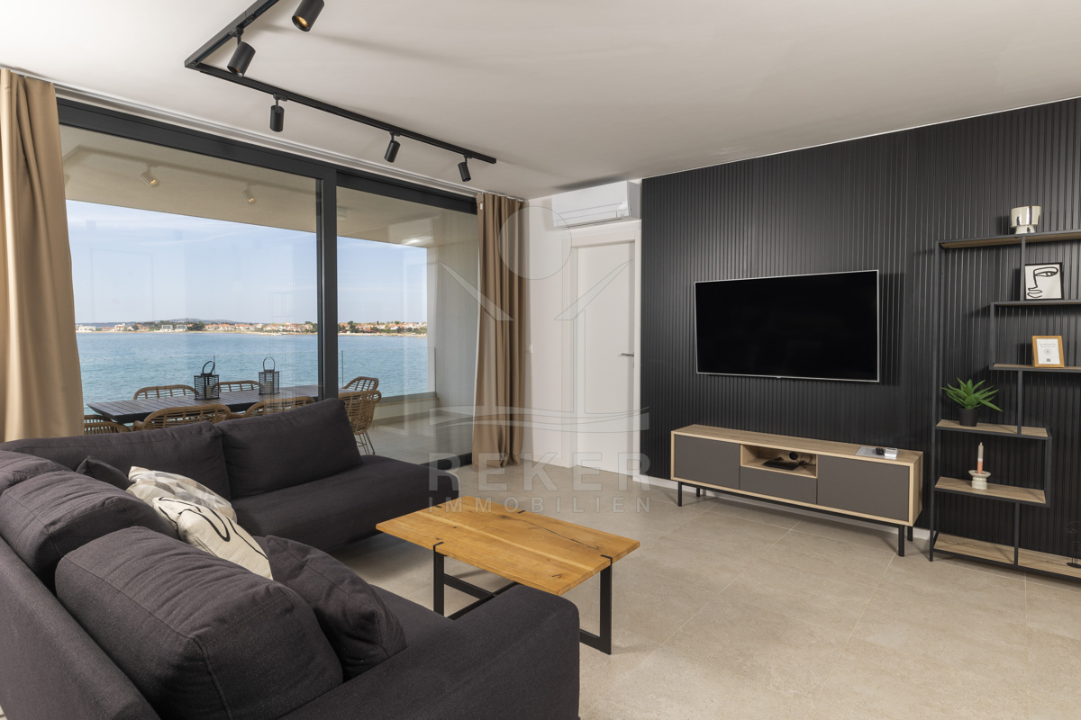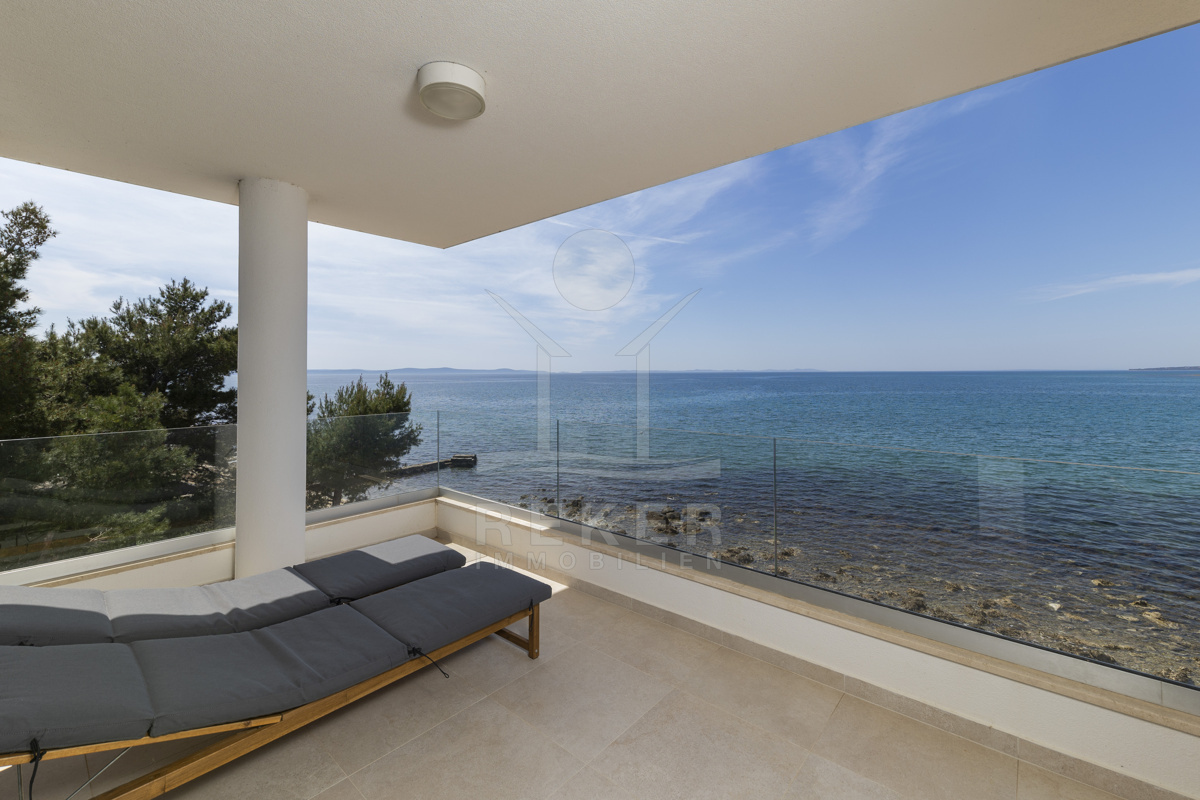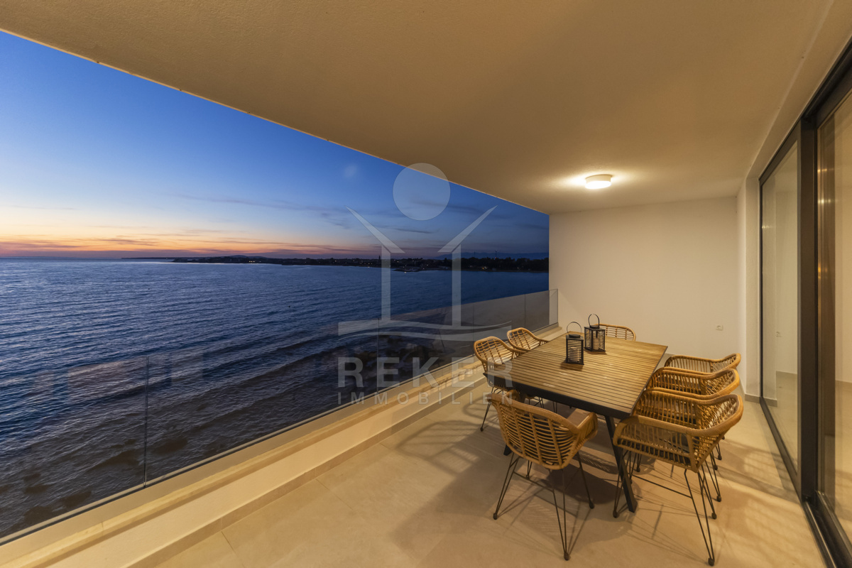 Nur fünf Meter vom Meer entfernt befindet sich dieses exklusive Penthouse in erster Reihe von Privlaka, einem der schönsten Küstenorte Norddalmatiens. Das moderne Gebäude steht direkt an der Uferpromenade, in ruhiger Umgebung, und verfügt über einen privaten Stellplatz (14,19 m²). Hier verbinden sich Meeresnähe und Wohnkomfort auf besondere Weise.