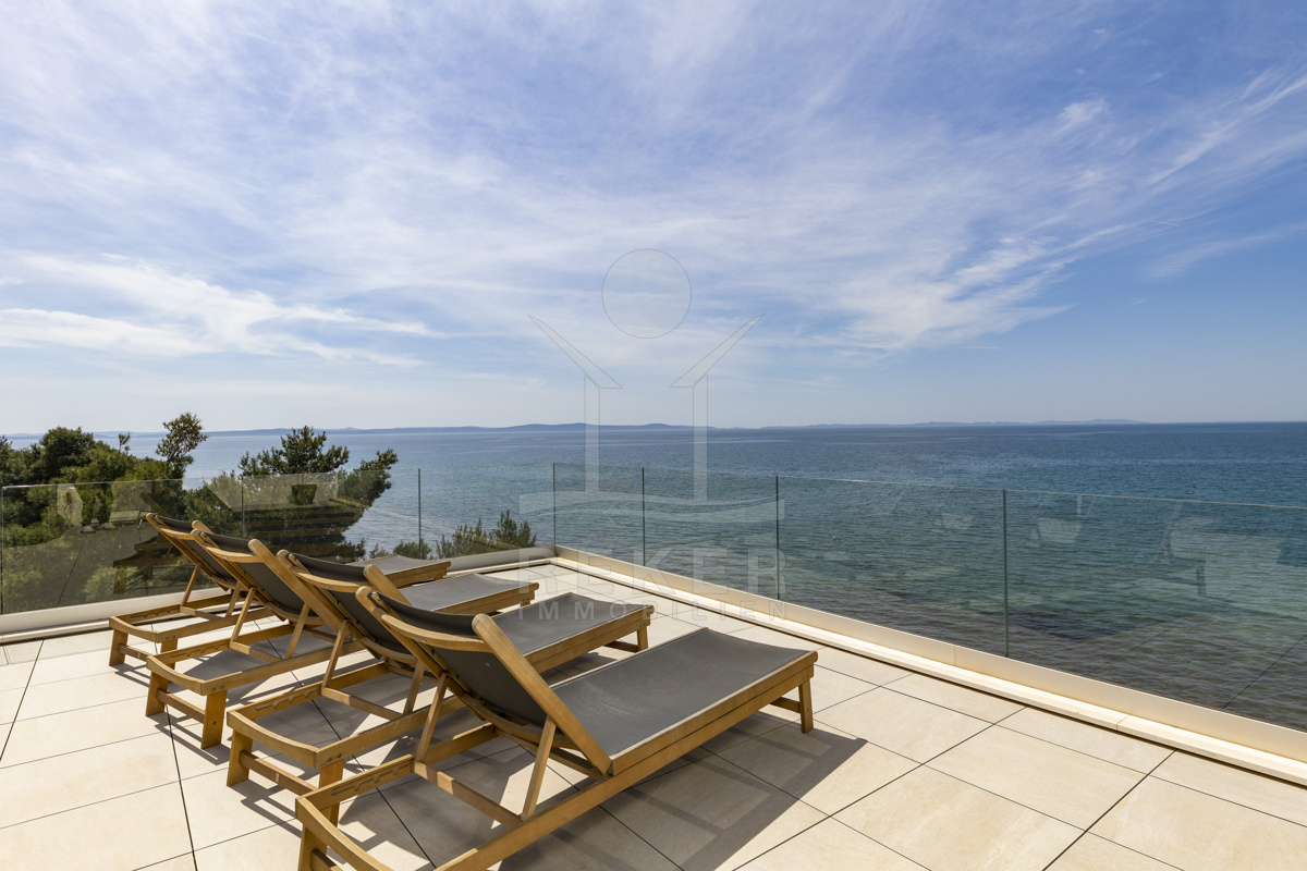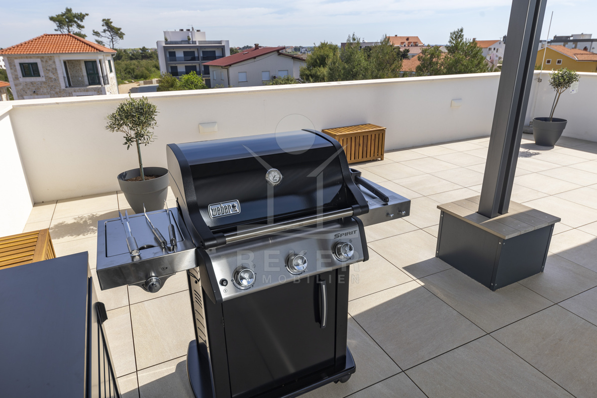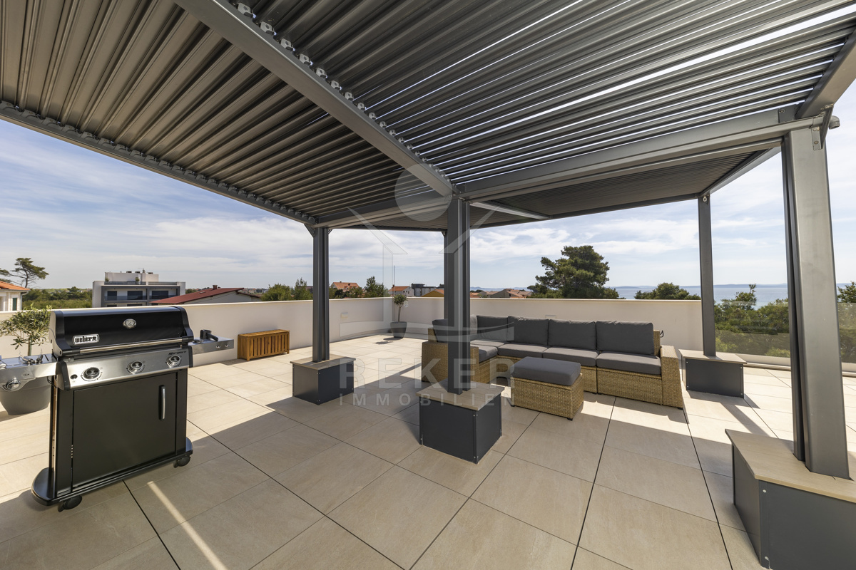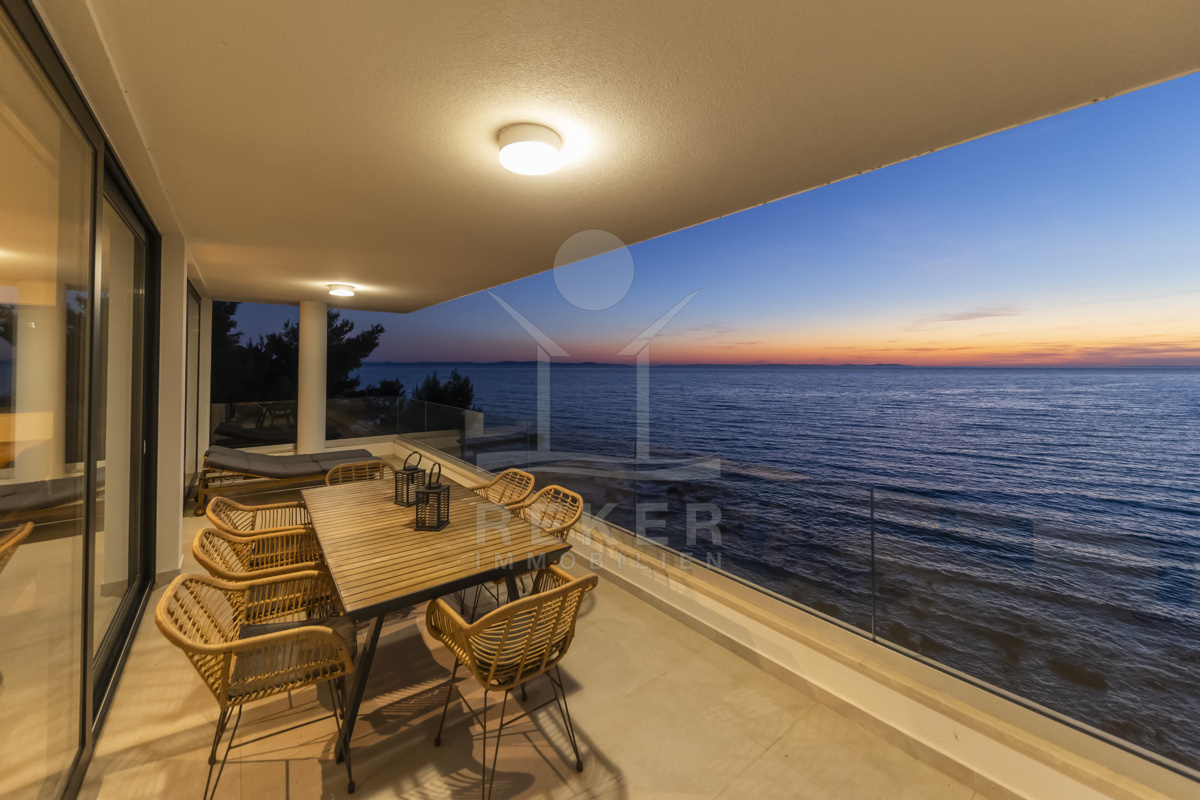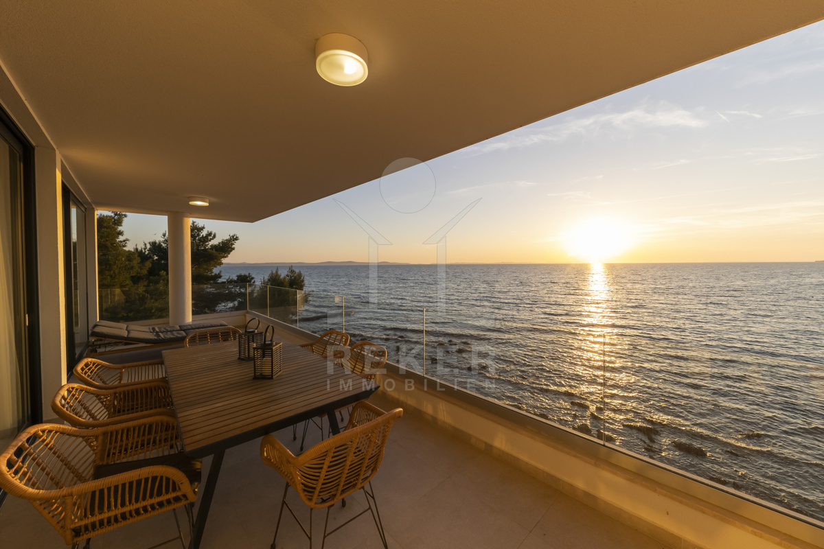 Nur fünf Meter vom Meer entfernt befindet sich dieses exklusive Penthouse in erster Reihe von Privlaka, einem der schönsten Küstenorte Norddalmatiens. Das moderne Gebäude steht direkt an der Uferpromenade, in ruhiger Umgebung, und verfügt über einen privaten Stellplatz (14,19 m²). Hier verbinden sich Meeresnähe und Wohnkomfort auf besondere Weise.