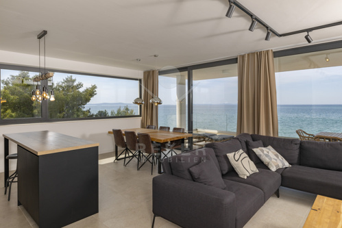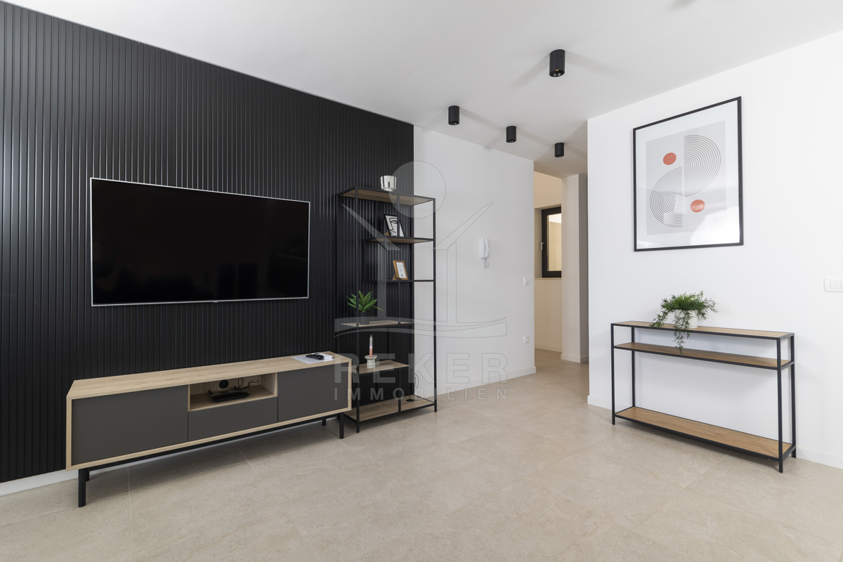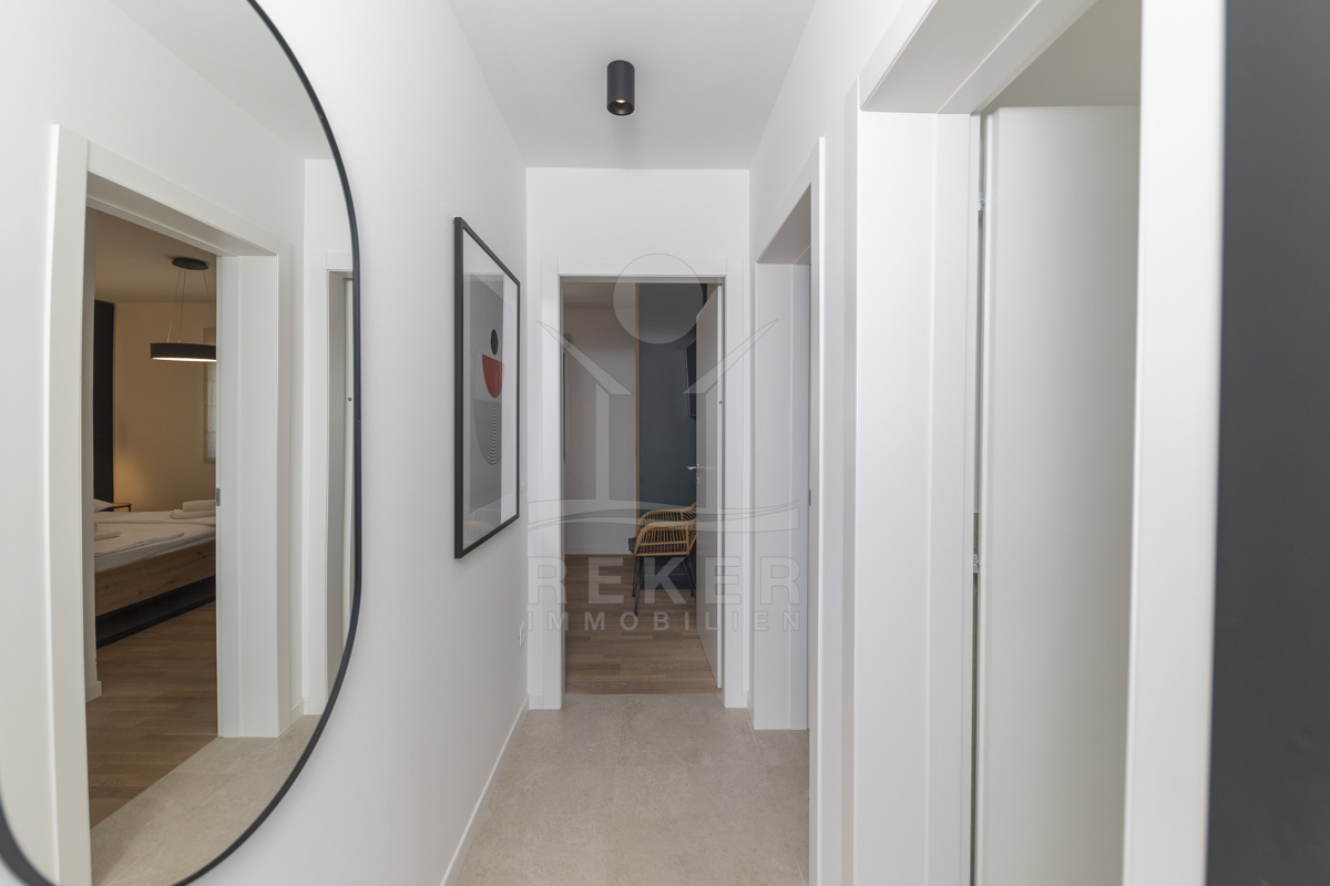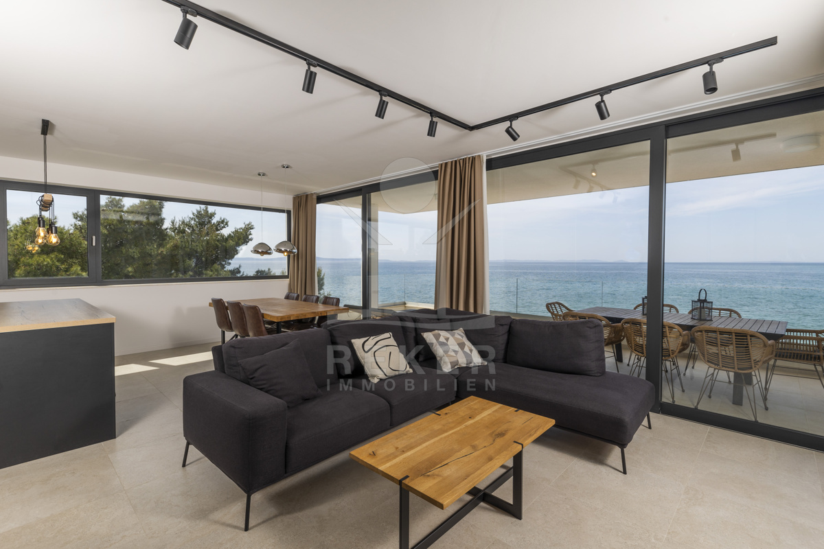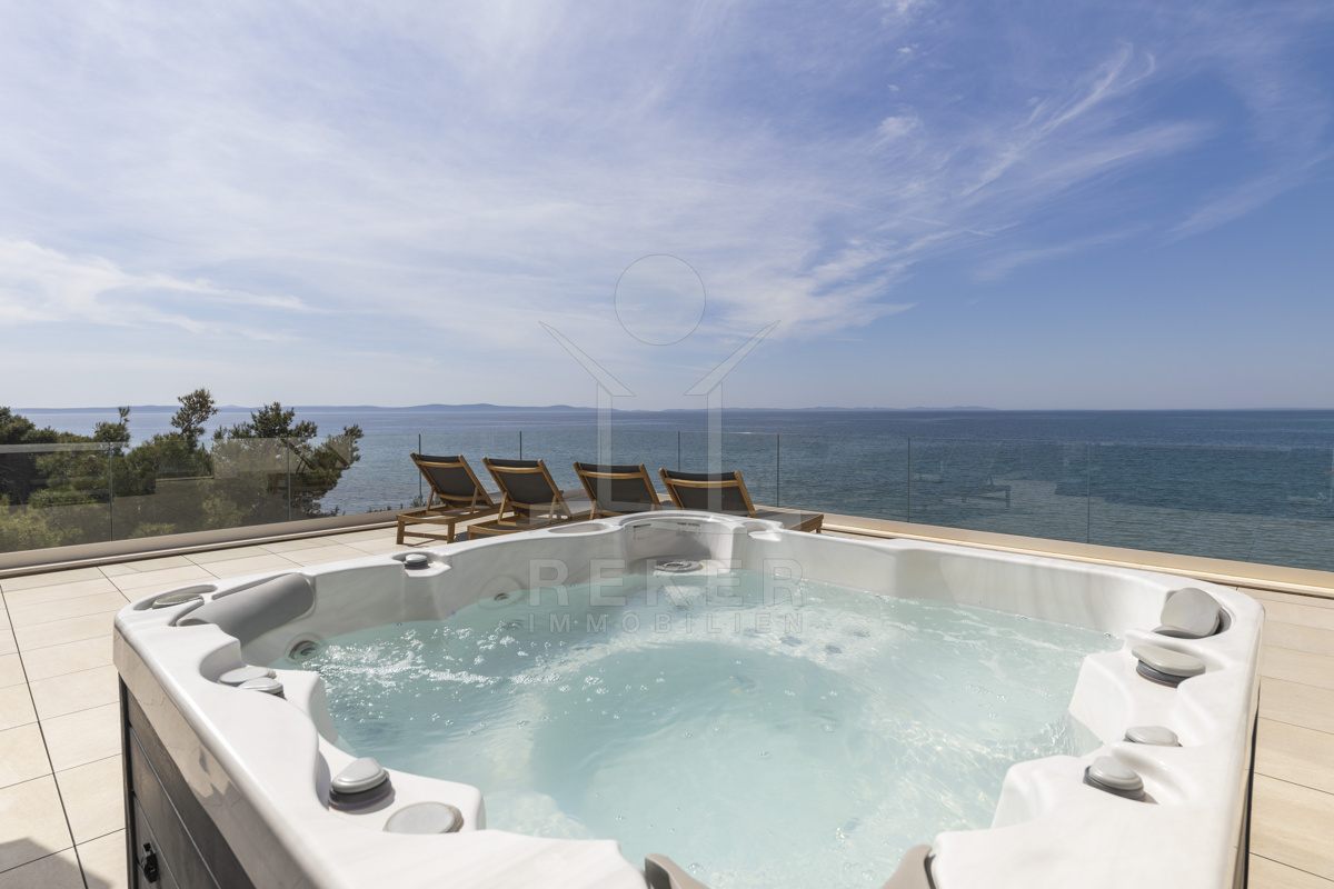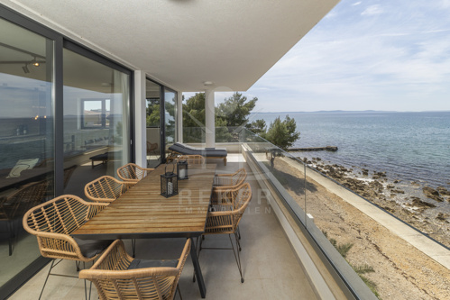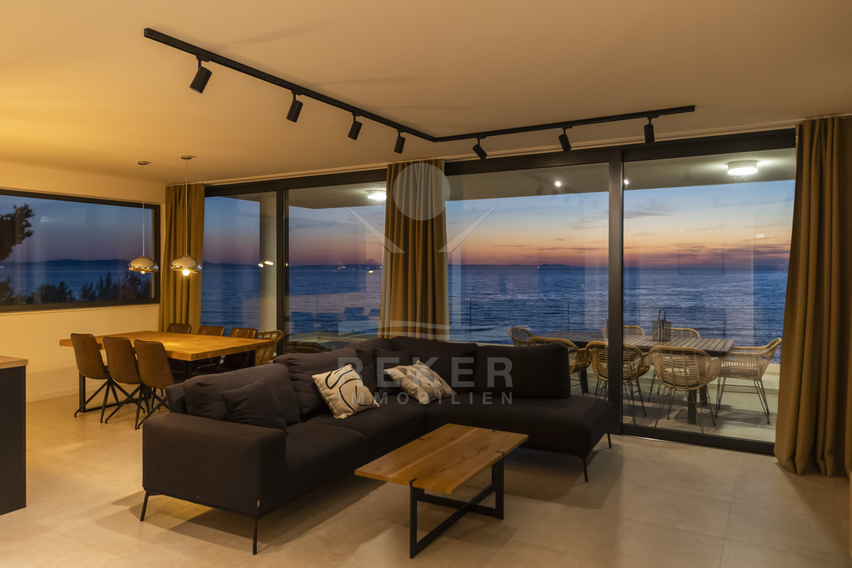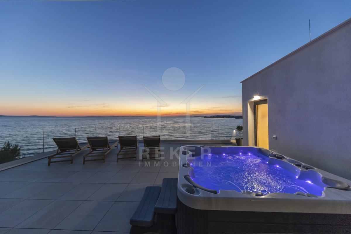 Nur fünf Meter vom Meer entfernt befindet sich dieses exklusive Penthouse in erster Reihe von Privlaka, einem der schönsten Küstenorte Norddalmatiens. Das moderne Gebäude steht direkt an der Uferpromenade, in ruhiger Umgebung, und verfügt über einen privaten Stellplatz (14,19 m²). Hier verbinden sich Meeresnähe und Wohnkomfort auf besondere Weise.
