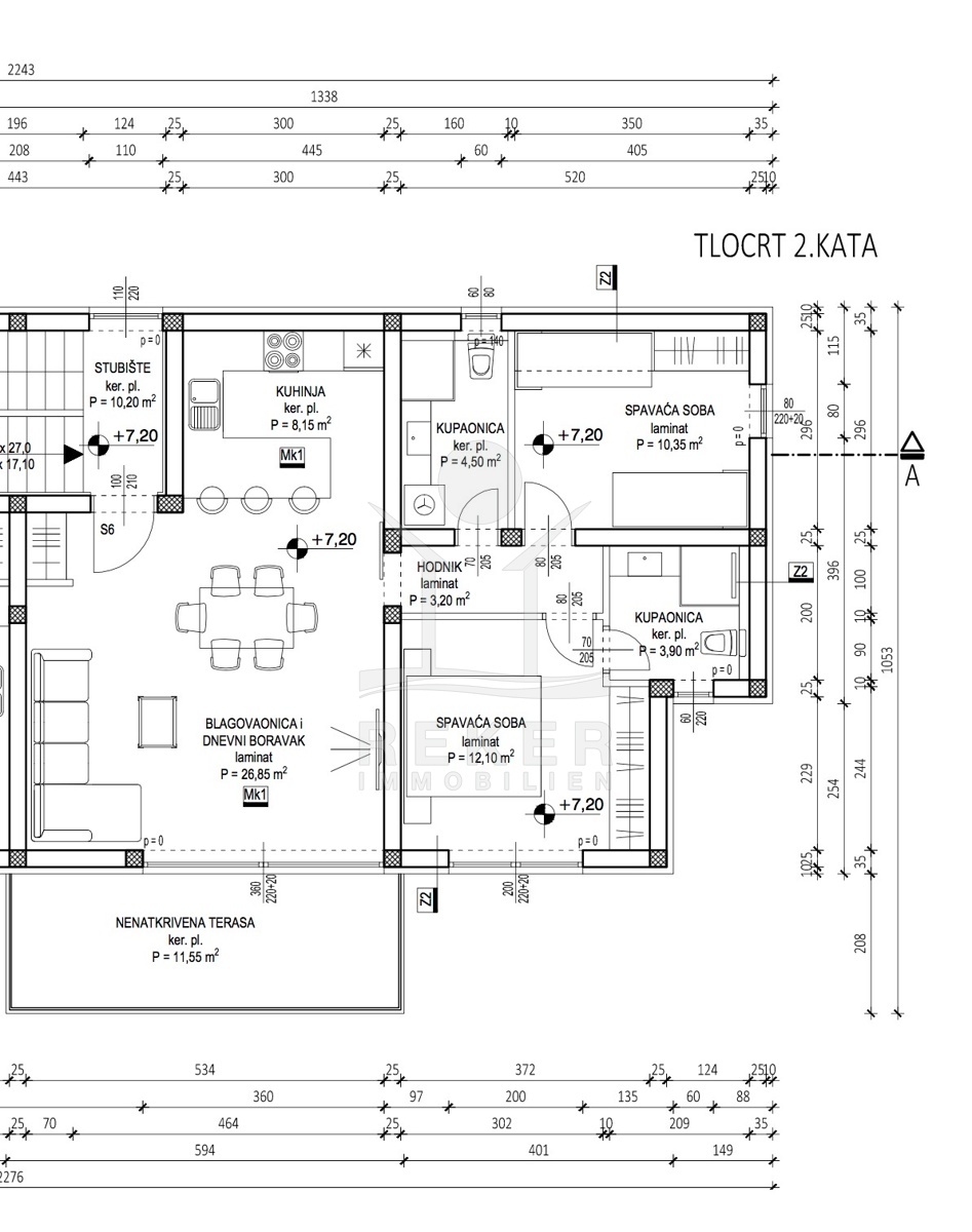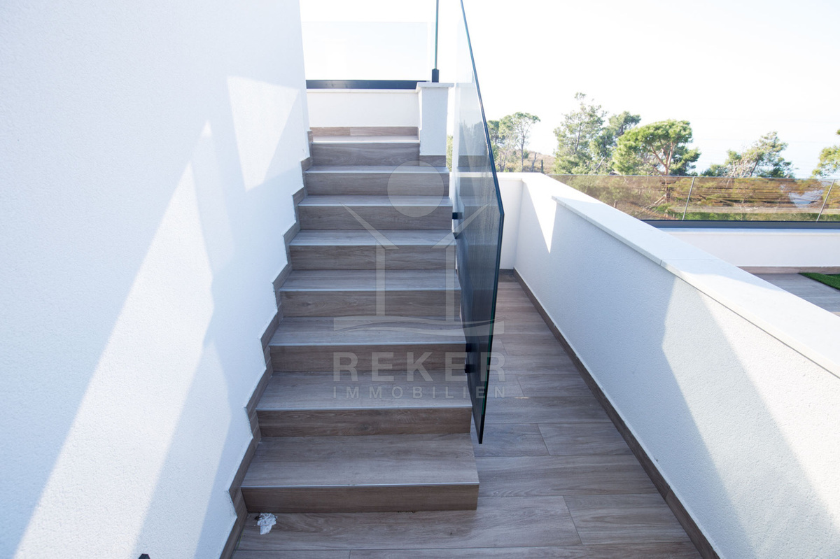 Das Neubau-Penthouse erstreckt sich über zwei Etagen und wurde 2023 als luxuriöses Domizil errichtet. Mit einer großzügigen Wohnfläche von 95 m² bietet es ausreichend Platz für Komfort und Bequemlichkeit. Der Bau wurde mit hochwertigen Materialien namhafter Hersteller realisiert, darunter Dreifachverglasung, Jalousien und Moskitonetze. Die einbruchhemmende und feuerbeständige Eingangstür sorgt für zusätzliche Sicherheit. Fliesenböden und PVC-Fenster verleihen der Wohnung ein modernes und stilvolles Ambiente. Dieses Penthouse bietet neben seinen exklusiven Merkmalen auch zwei Außenparkplätze, damit Sie sich keine Sorgen um die Fahrzeugunterbringung machen müssen.