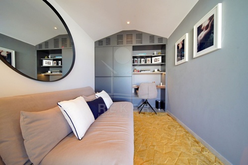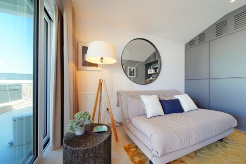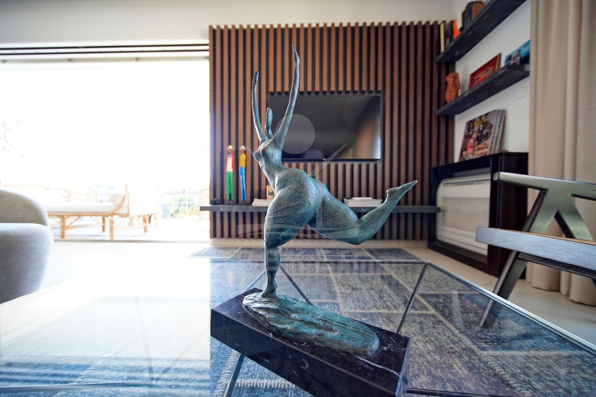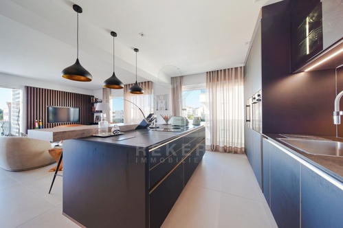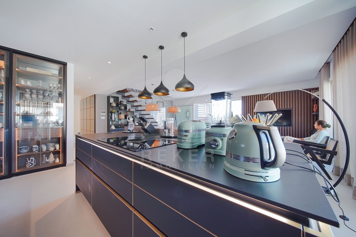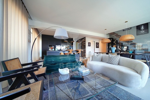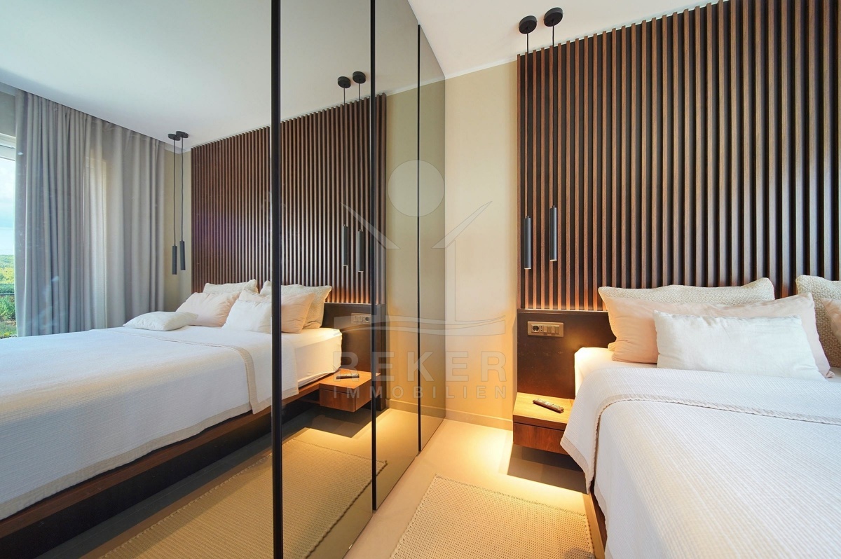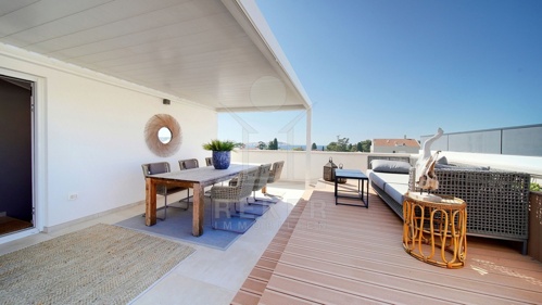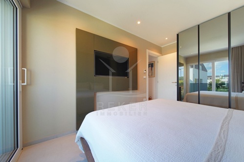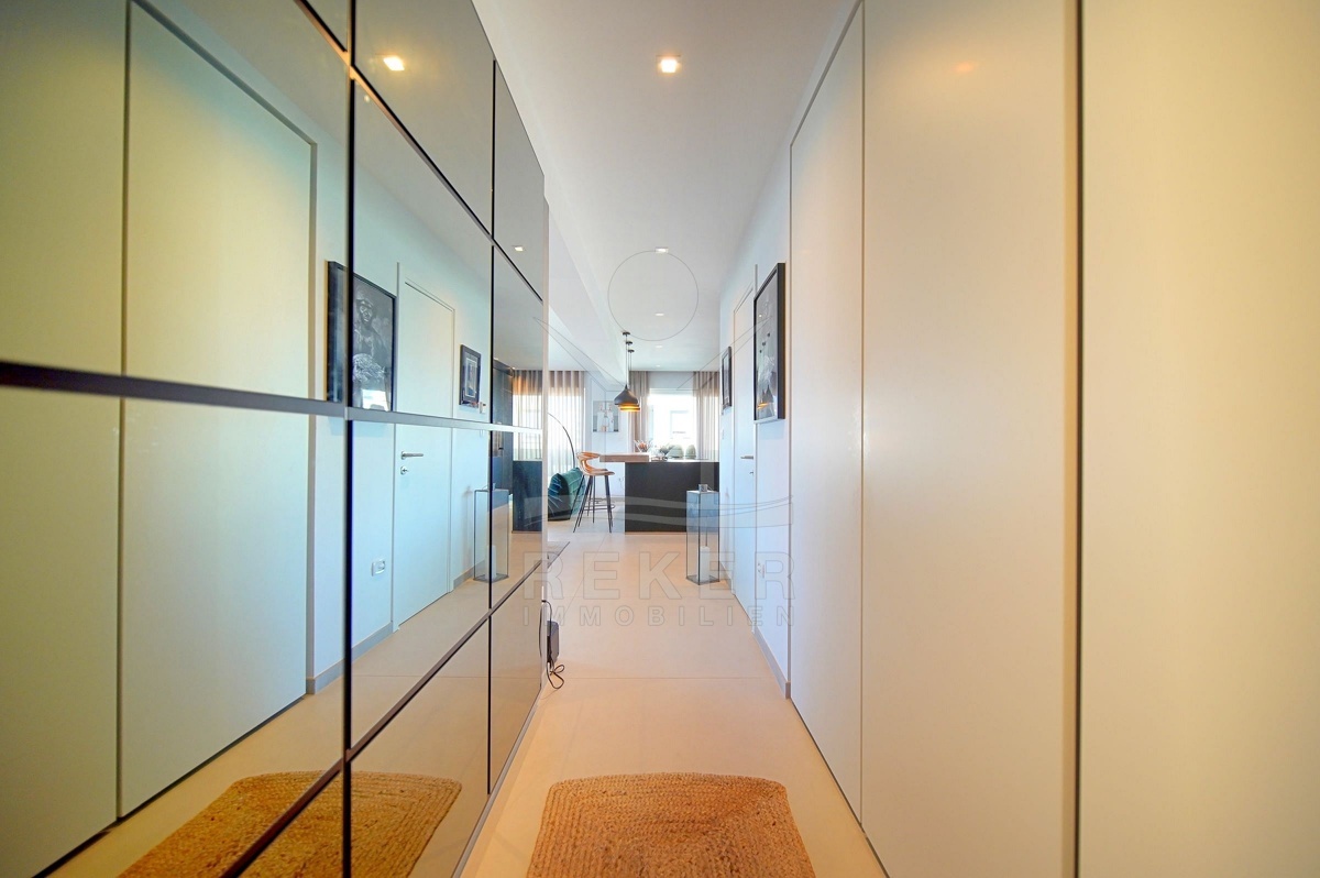 Die Wohnung wird vollständig mit Designermöbeln übergeben, alle Möbel sind im Kaufpreis enthalten. Keramikfliesen und Parkett, Fußbodenheizung mit Gas, Klimaanlage, Aluminiumfenster mit Doppelverglasung, motorisierte Rollos und moderne Technik bieten hohen Wohnkomfort. Ergänzt wird das Angebot durch einen Abstellraum im Untergeschoss mit 10,14 m². Dieses Penthouse verbindet anspruchsvolles Wohnen, Strandnähe und eine ruhige Umgebung auf stimmige Weise.