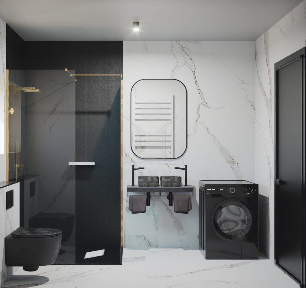 Die Penthousewohnung befindet sich in einem kleinen Neubaugebäude mit nur 6 Wohnungen und bietet eine großzügige Gartenfläche von 134 m². Die Wohnung wird mit modernen Annehmlichkeiten ausgestattet, darunter eine Video-Gegensprechanlage, Sicherheitstür, Fußbodenheizung und Klimaanlage. Die Fertigstellung ist für Juni 2025 geplant. Das Penthouse bietet 2 eigene Parkplätze.