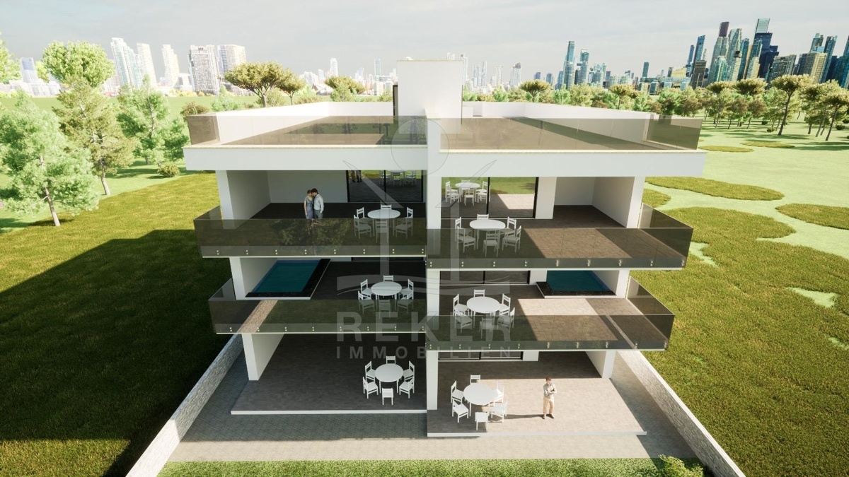 Die spektakuläre Dachterrasse mit ihrem eigenen Pool und einer Fläche von 144 m² wird Sie begeistern. Hier können Sie die exklusive Lage in vollen Zügen genießen und den unvergesslichen Panoramameerblick bewundern – der perfekte Ort, um Himmel und Meer zu vereinen.