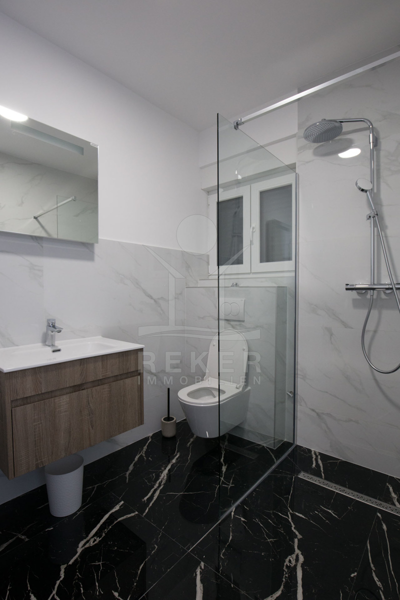 Das Wohnhaus bietet insgesamt vier Wohnungen, von denen jede über einen Panoramablick auf das Meer verfügt. Beim Bau und bei der Einrichtung wurde ausschließlich auf hochwertigste Materialien von namhaften Herstellern gesetzt, um höchsten Wohnkomfort zu gewährleisten. Die Wohnung ist fertig zum Erstbezug und das Baujahr liegt im Jahr 2023. Ein Parkplatz direkt vor dem Haus steht Ihnen zur Verfügung, sodass Sie Ihr Fahrzeug bequem und sicher abstellen können. Erleben Sie in dieser Neubauwohnung ein entspanntes und komfortables Wohnen mit beeindruckendem Meerblick.