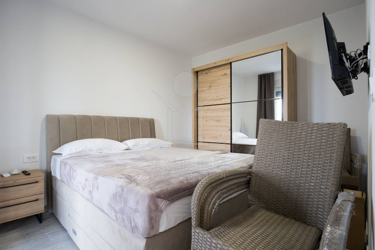 Der moderne Neubau befindet sich in Sveti Petar na Moru, nur 200 Meter von der Küste und dem Strand entfernt. Die Lage zeichnet sich durch ihre Ruhe und die mediterrane Umgebung mit vielen Bäumen und viel Grün aus. Genießen Sie die idyllische Atmosphäre und lassen Sie sich von den malerischen Ausblicken auf das Meer und die umliegenden Inseln verzaubern.