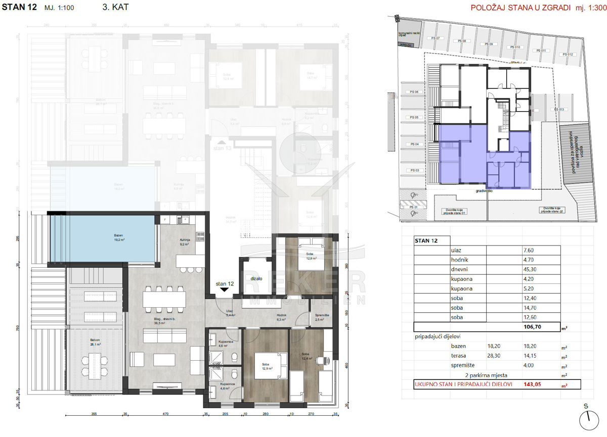 Drei Schlafzimmer, zwei Bäder – eines en suite. 106 m² Raum, der offen, hell und klar geschnitten ist. Dazu Klimaanlage, Fußbodenheizung und PVC-Fenster. Die Technik passt. Der Stil? Ihrer. Denn die Wohnung wird unmöbliert übergeben. Und draußen? 28 m² Balkon und 18 m² Pool. Ihr eigenes Wasserbecken unter freiem Himmel. Für Morgenrunden, Nachmittagskühle und Sonnenuntergänge mit Stil.