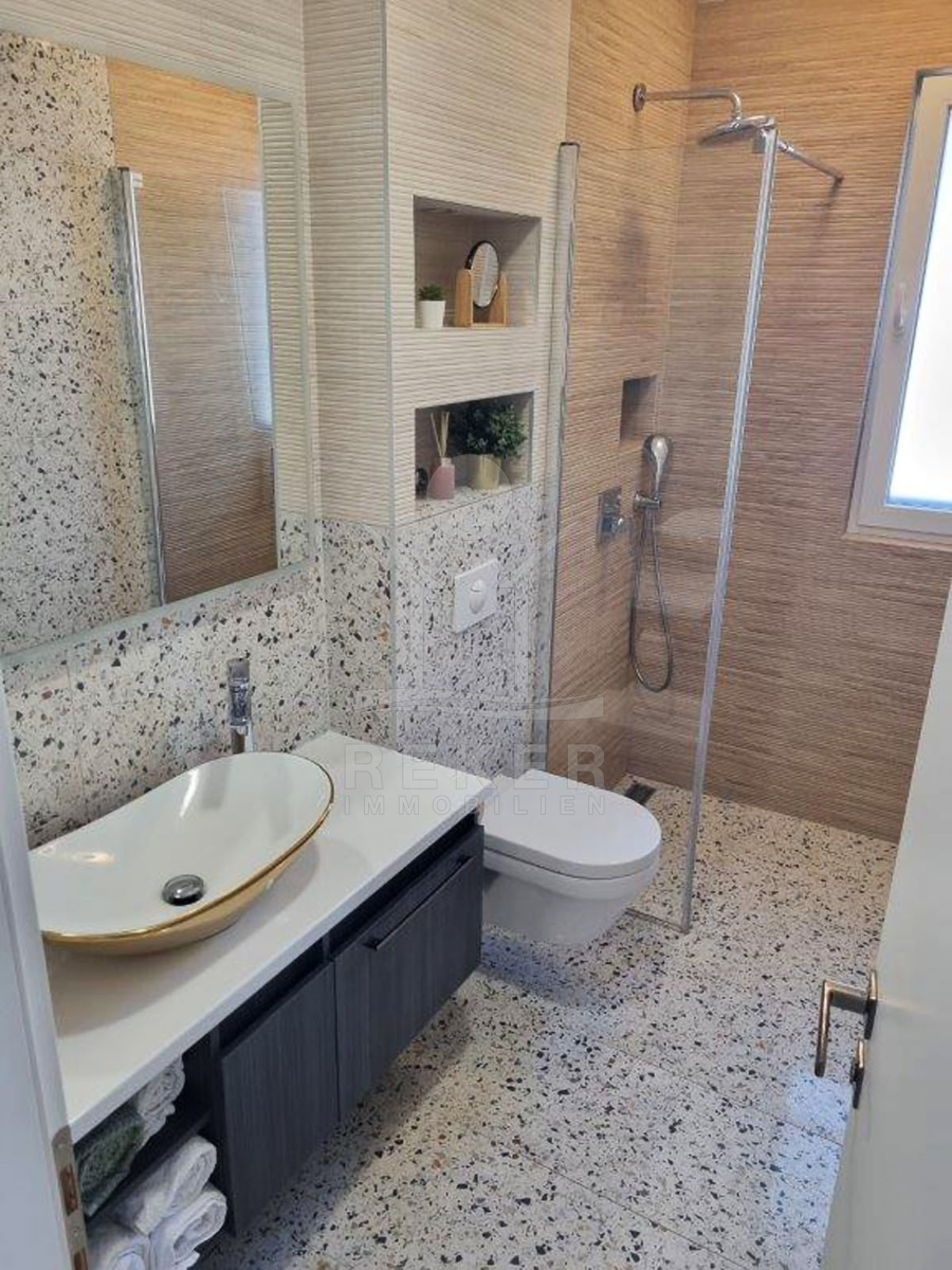 Die Penthousewohnung auf Čiovo begeistert durch ihre zentrale Lage und die Nähe zum glasklaren Meer – nur 200 Meter entfernt, perfekt erreichbar zu Fuß. Die attraktive Insel besteht aus verschiedenen charmanten Orten wie Okrug Gornji und Slatine und ist durch eine Brücke mit der historischen Altstadt von Trogir verbunden, die Ihnen unzählige kulturelle Highlights bietet. Die Insel selbst ist gesegnet mit fruchtbaren Böden, üppigen Pinienwäldern und malerischen Olivenhainen, die eine beeindruckende Kulisse bilden und Naturfreunde begeistern. Entdecken Sie die wunderschönen Buchten, die zum Baden und Schnorcheln einladen. Zu den lokalen Attraktionen gehört die faszinierende Wallfahrtskirche Prizidnica, die nur zu Fuß erreichbar ist und Ihnen einen Einblick in die Geschichte der Insel bietet. Die frische Meeresluft, 2600 Sonnenstunden im Jahr und die Vielzahl an Heilpflanzen machen Čiovo zu einem einzigartigen Ort zum Wohnen und Entspannen. Die Kombination aus erholsamer Natur und der Nähe zu einem historischen Zentrum macht diese Lage zu einem wahren Traum.