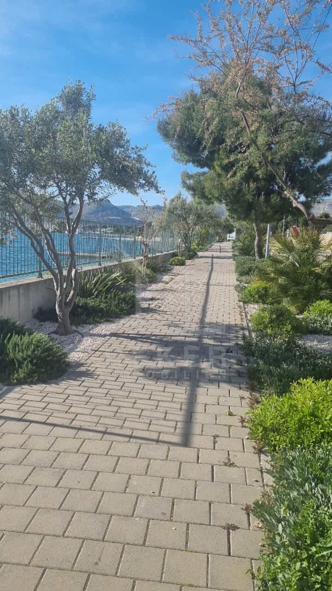 Auf der Insel Čiovo, nur 120 Meter vom Meer entfernt, erwartet Sie dieses gepflegte Apartment in ruhiger Lage. Den Strand erreichen Sie in nur sechs Minuten zu Fuß, die historische Altstadt von Trogir in rund acht Minuten. Durch die Nähe zum Flughafen Split, der etwa zwölf Minuten entfernt ist, eignet sich die Immobilie auch hervorragend für internationale Gäste. Sie befindet sich in einer Sackgasse ohne Durchgangsverkehr, direkt neben einer geschützten Grünzone, in der keine Neubauten mehr erlaubt sind. So genießen Sie dauerhaft Ruhe, Privatsphäre und einen freien Blick auf die Bucht.