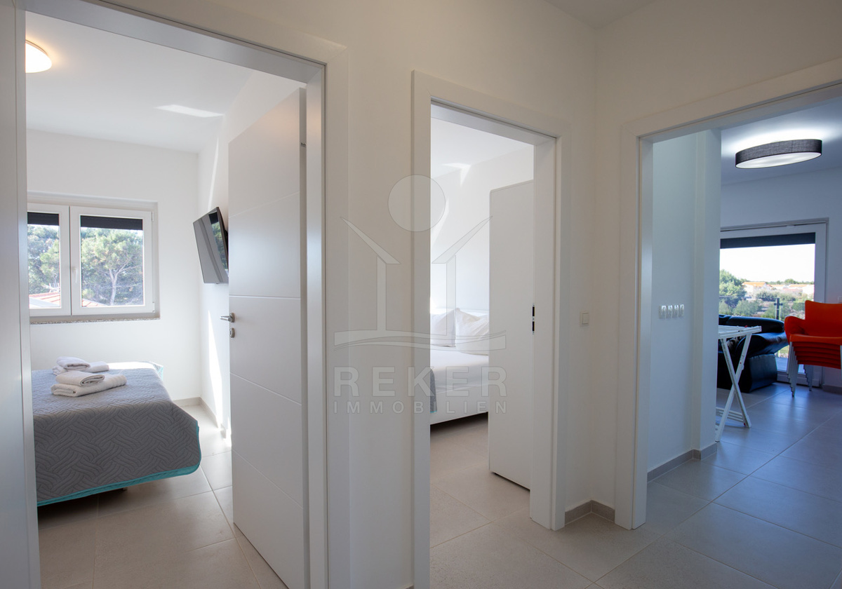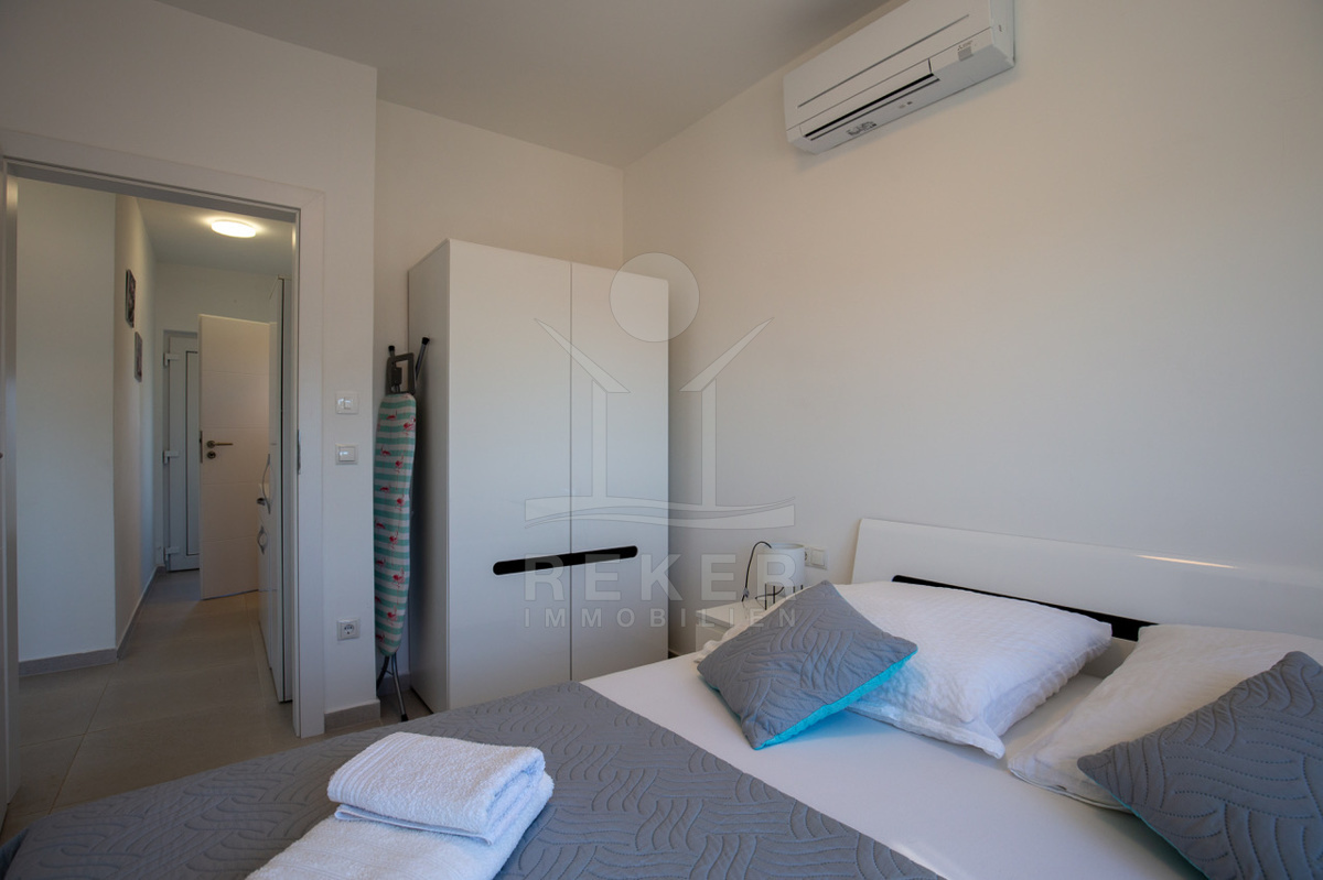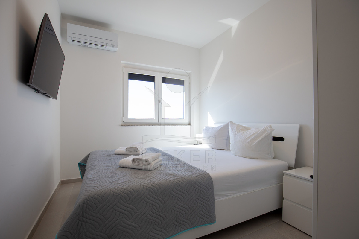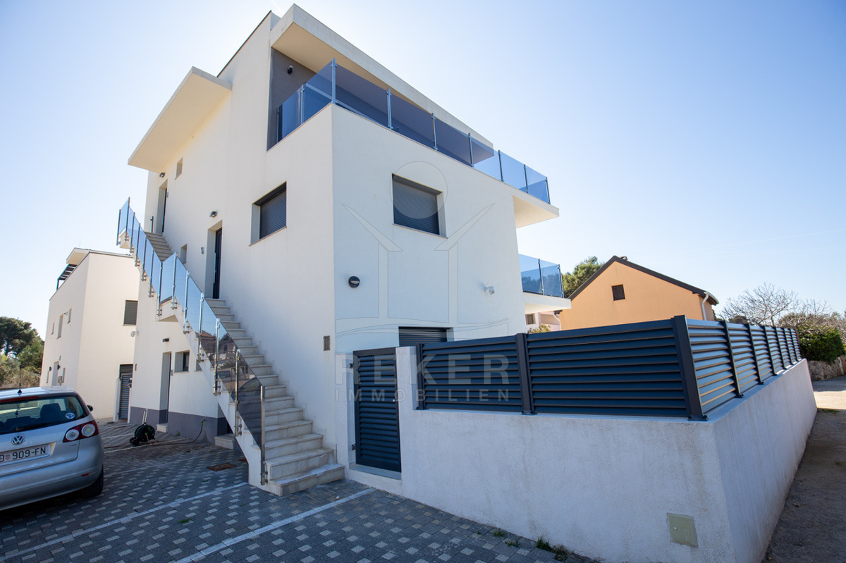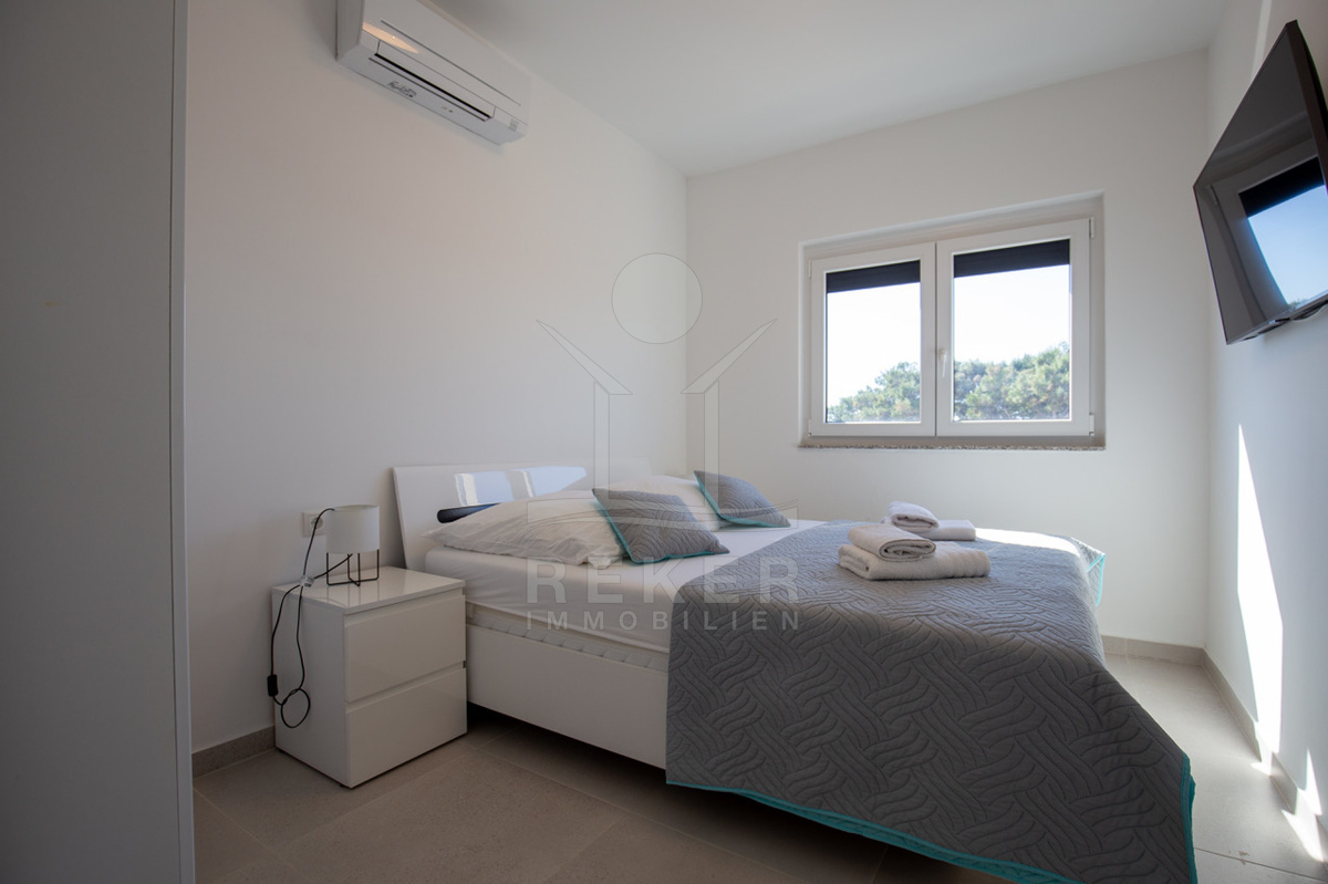 Das Penthouse auf der malerischen Insel Vir befindet sich in einer ruhigen Umgebung, nur etwa 500 Meter vom Meer und dem Stadtzentrum entfernt. Die strategische Lage ermöglicht es Ihnen, in kürzester Zeit die örtlichen Restaurants und Supermärkte zu erreichen, sodass Sie alles für Ihren Aufenthalt bequem zur Hand haben. Die Insel Vir ist Teil des wunderschönen Archipels von Zadar und bietet durch die Brücke bei Privlaka eine unkomplizierte Anbindung an das kroatische Festland, was die Erreichbarkeit mit dem Auto erleichtert.