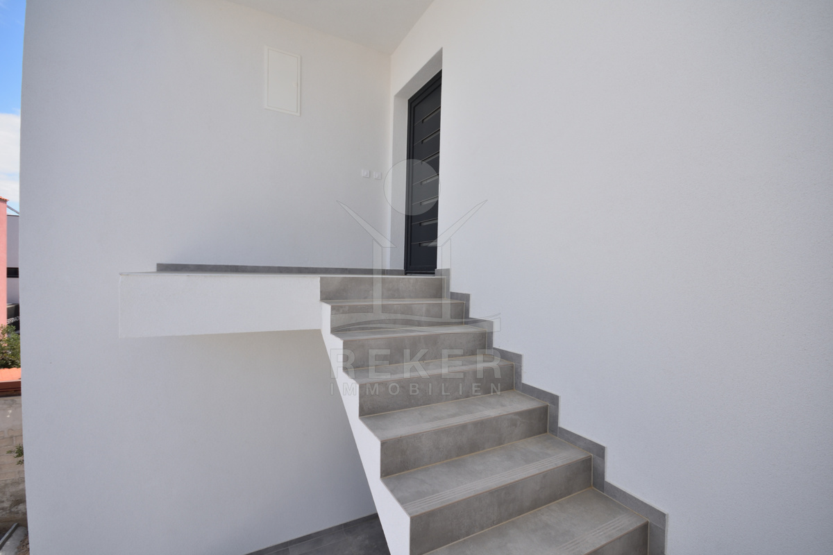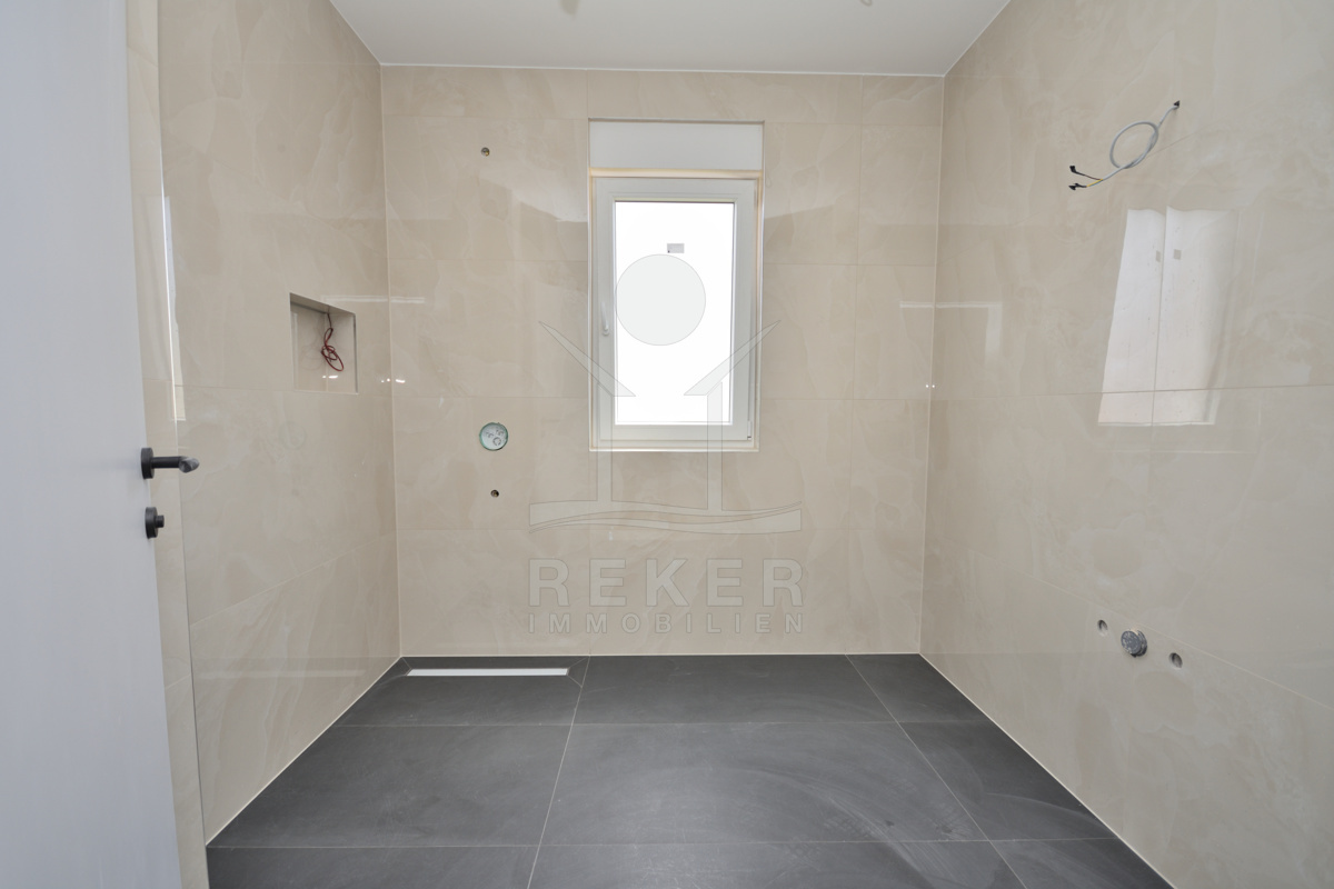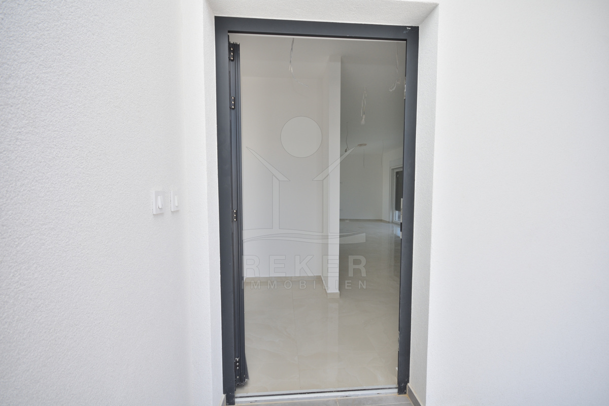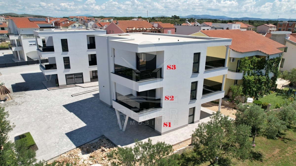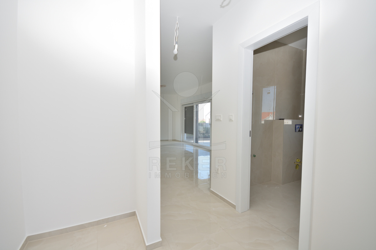 Vodice liegt direkt an der Küste, in einer beliebten, aber nicht überlaufenen Region. Die Wohngegend dieses Neubauprojekts ist ruhig und entspannt, kein Durchgangsverkehr, wenig Lärm. Der Strand ist nur rund 600 Meter entfernt, also bequem zu Fuß erreichbar. Auch das Ortszentrum mit Geschäften und Infrastruktur liegt in Gehweite, etwa 800 Meter. Die Nachbarschaft besteht überwiegend aus gepflegten Wohnhäusern mit Gärten und mediterranem Flair.