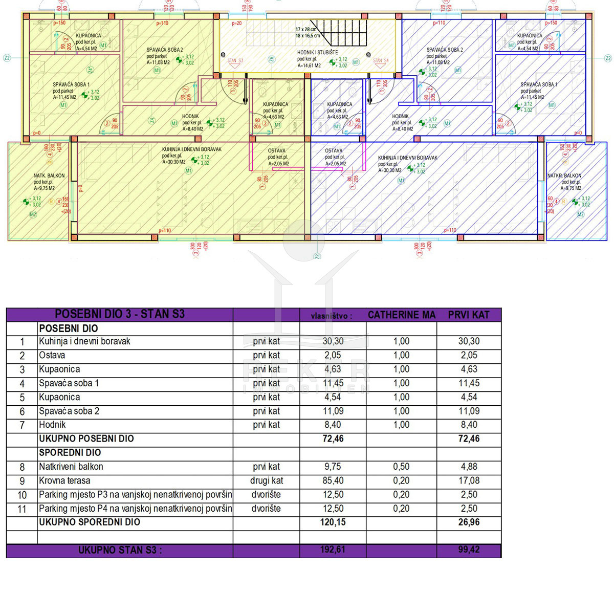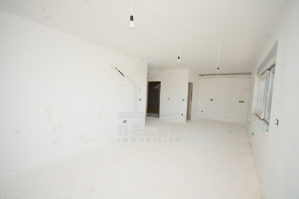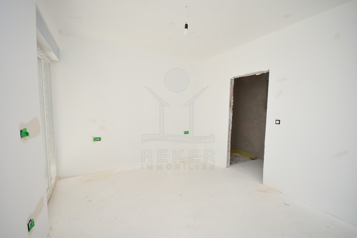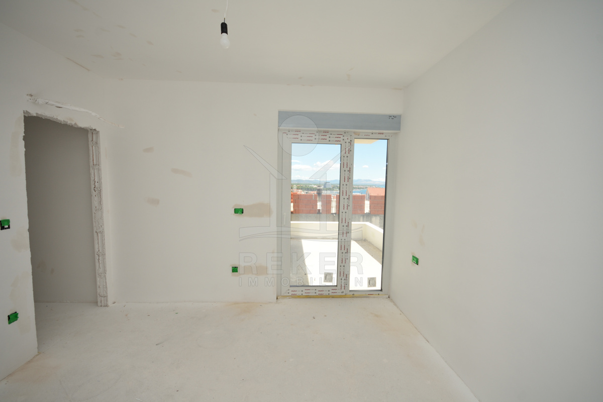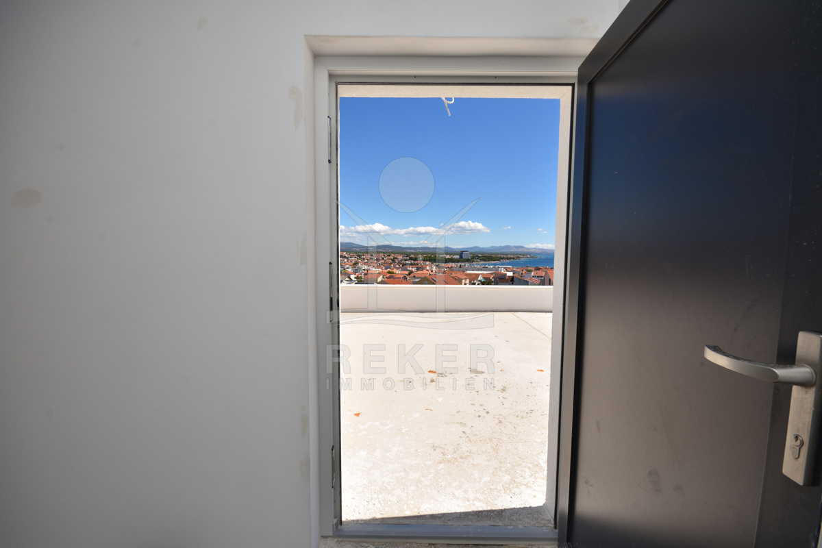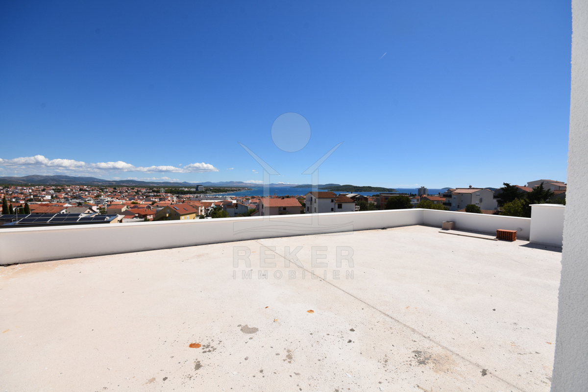 Der Außenbereich ist das Highlight. Eine Dachterrasse mit 85,40 m² eröffnet den Blick über die Dächer von Vodice bis zum Meer. Weit, offen, beeindruckend. Zusätzlich gibt es einen 9,75 m² großen Balkon, der als weiterer Freisitz genutzt werden kann. Zur Wohnung gehören zwei Stellplätze.