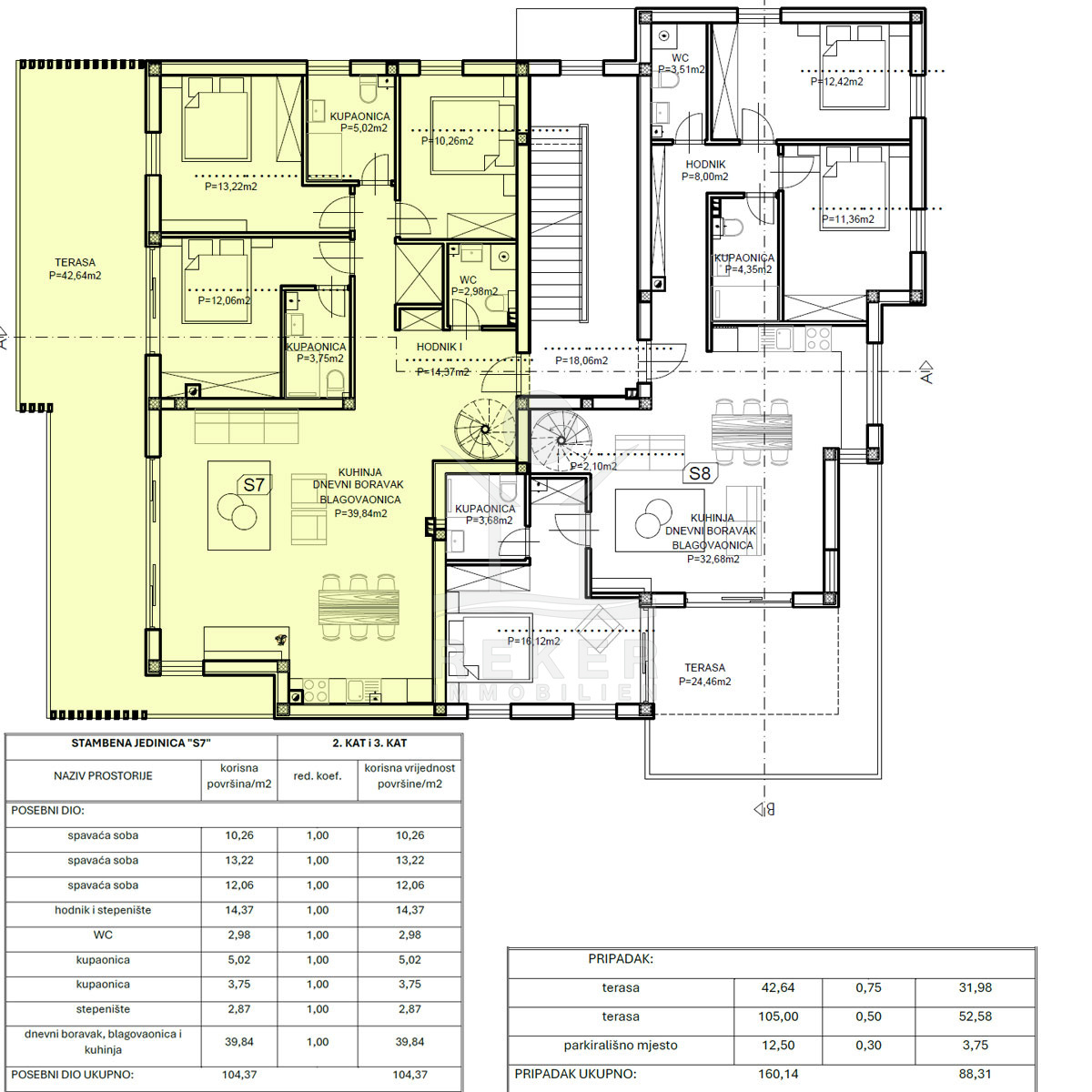Die Wohnung erstreckt sich über zwei Ebenen im zweiten Stock. Auf der Wohnebene erwartet Sie eine Terrasse mit 42,64 m². Sie gewinnen spürbar Platz im Freien. Ob gemeinsames Essen draußen oder entspannte Abende. Darüber erweitert die Dachterrasse mit 70,10 m² den Außenbereich deutlich. Von hier genießen Sie Meerblick und viel Raum für individuelle Gestaltung.