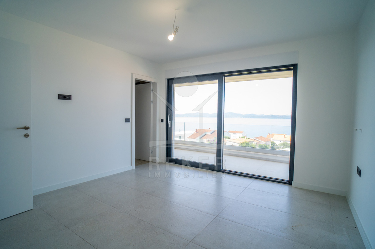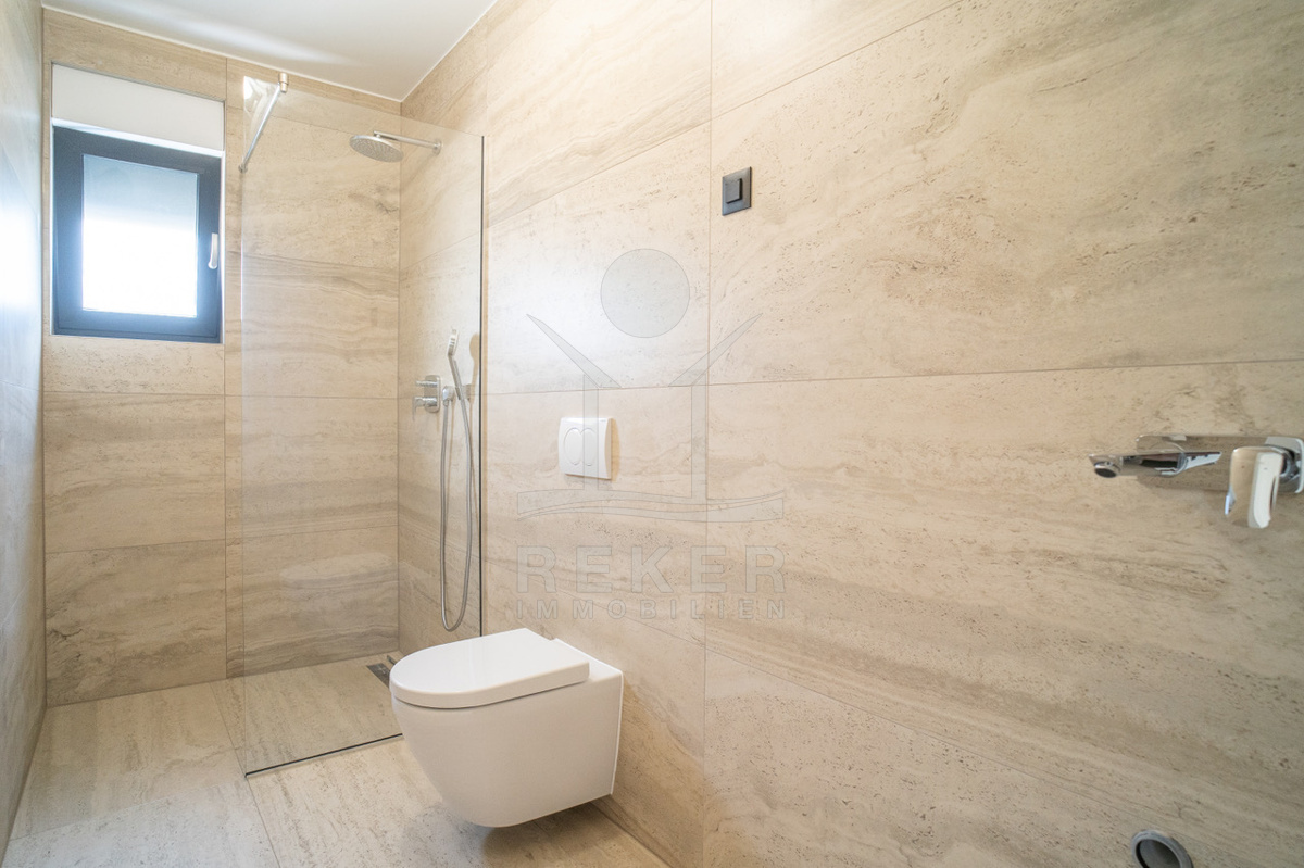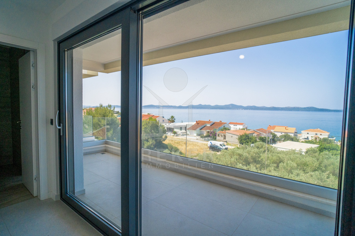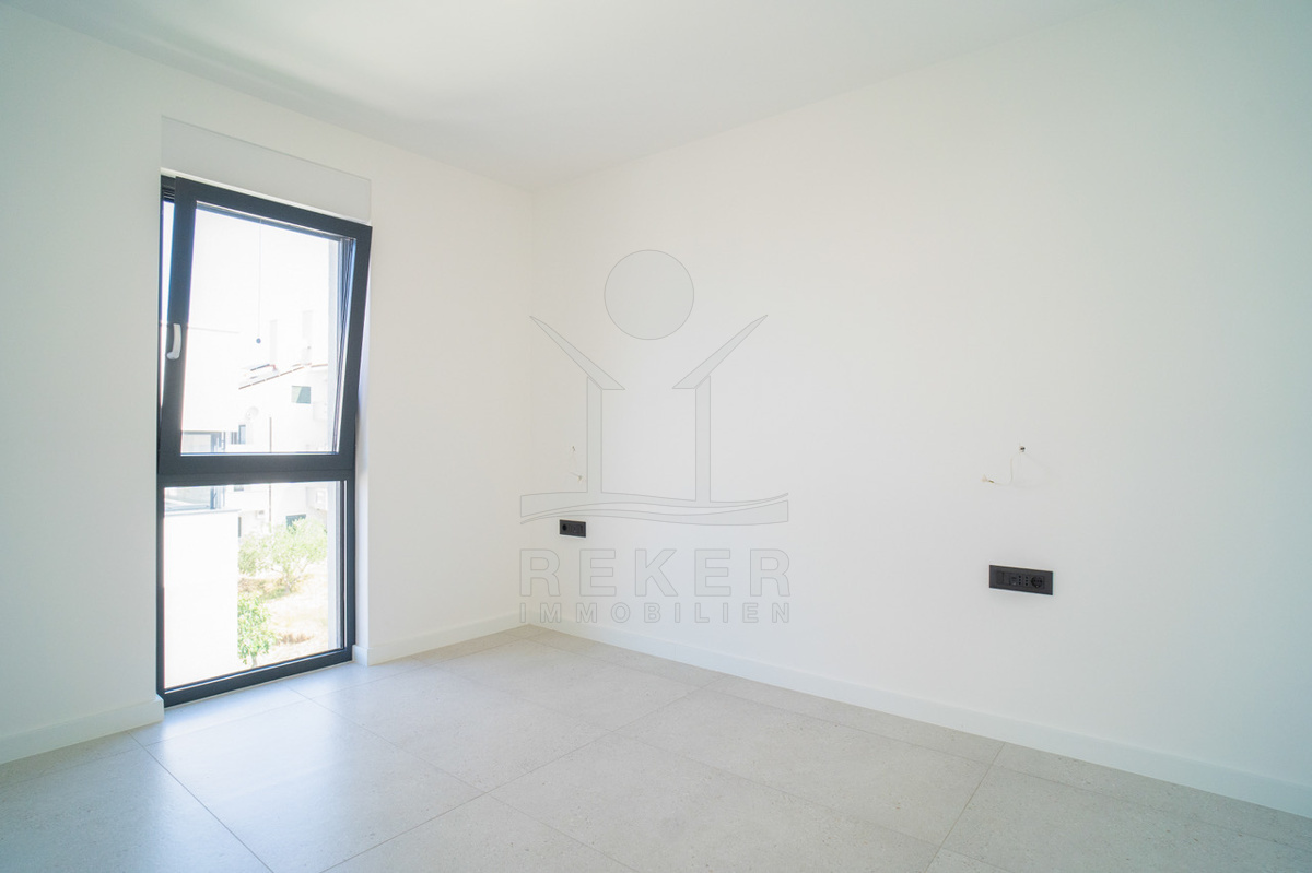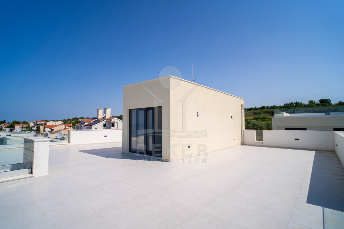Nur ein paar Minuten von Zadar entfernt und doch mitten im Grünen – dieses moderne Haus liegt in einer kleinen, ruhigen Wohnsiedlung Dalmatiens. Rundherum: Olivenbäume, moderne Villen und die entspannte Atmosphäre der Küste. Das Meer? Nur 200 Meter entfernt. Sie hören es rauschen, noch bevor Sie es sehen.