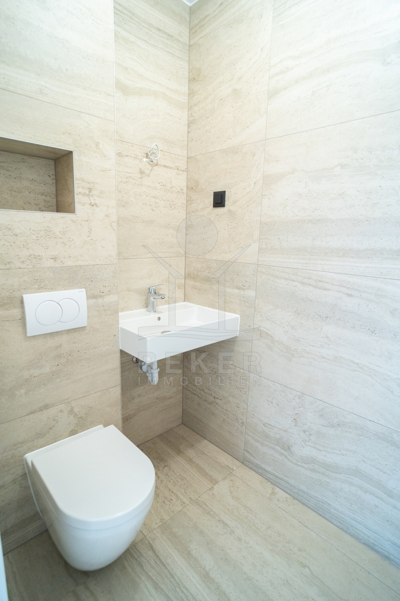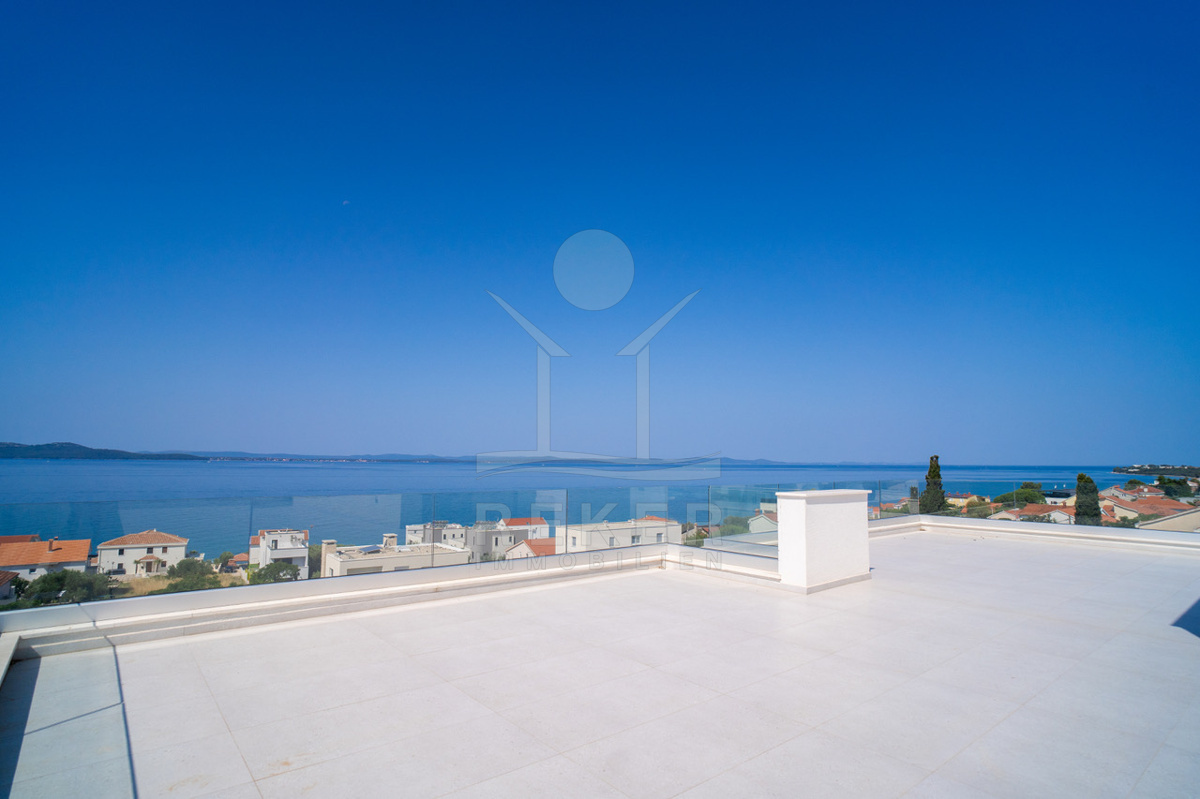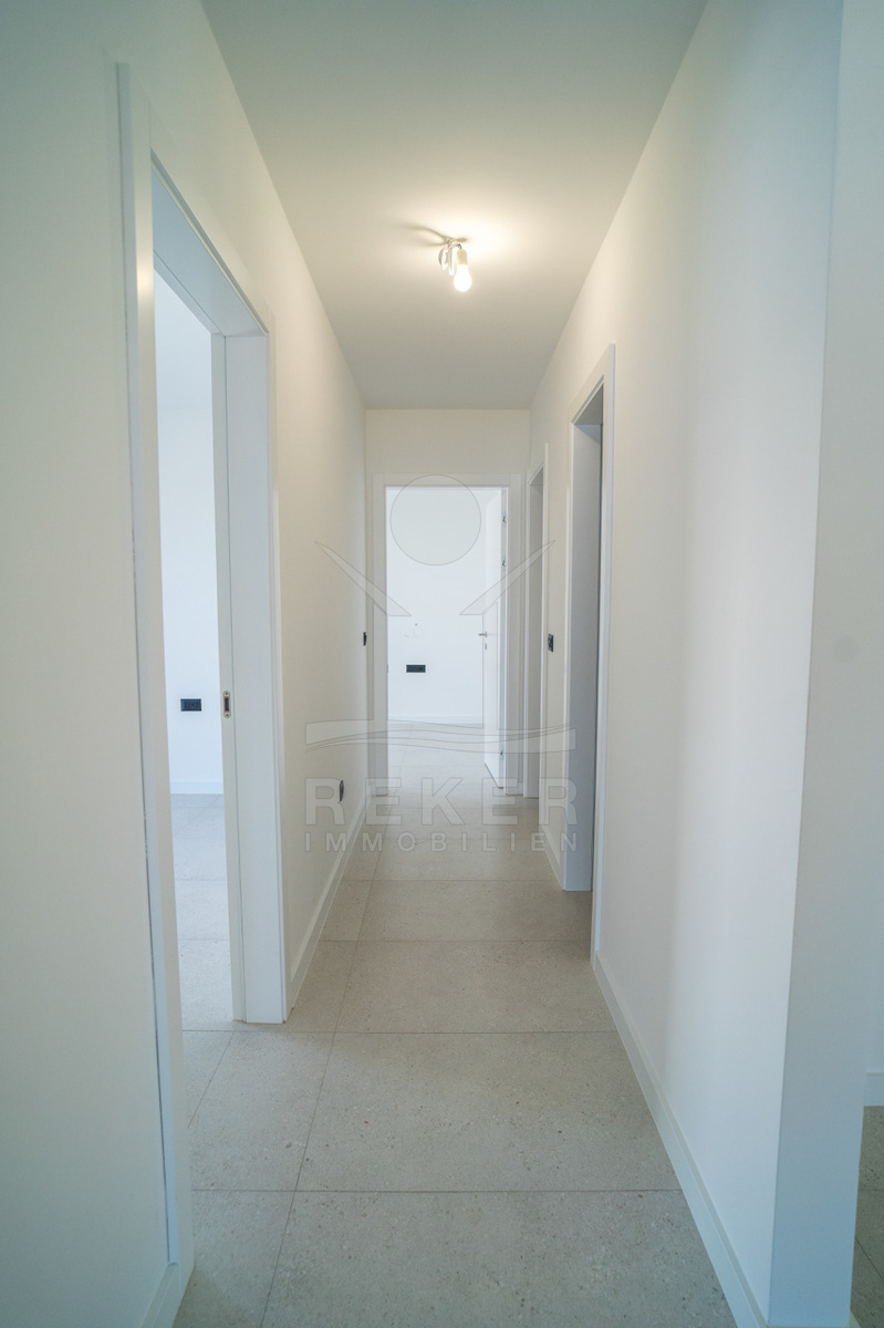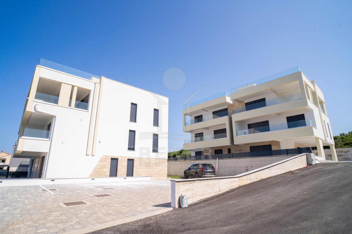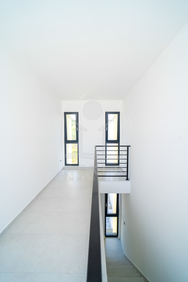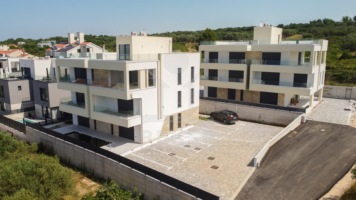 Nur ein paar Minuten von Zadar entfernt und doch mitten im Grünen – dieses moderne Haus liegt in einer kleinen, ruhigen Wohnsiedlung Dalmatiens. Rundherum: Olivenbäume, moderne Villen und die entspannte Atmosphäre der Küste. Das Meer? Nur 200 Meter entfernt. Sie hören es rauschen, noch bevor Sie es sehen.