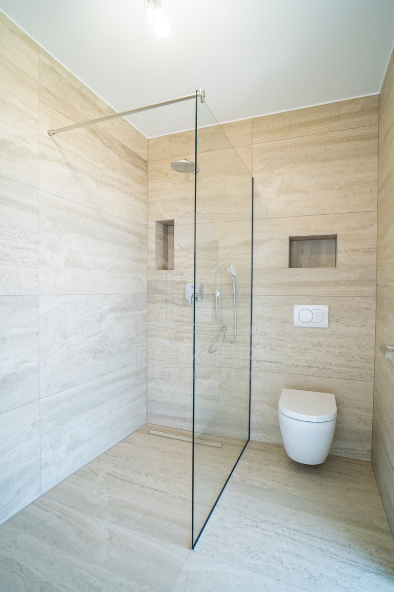 Zwei überdachte Terrassen und eine Loggia bieten zusätzlichen Raum im Freien … ideal zum Frühstücken, Arbeiten oder einfach nur zum Durchatmen. Das Highlight aber liegt eine Etage höher: Die Dachterrasse gehört allein zu dieser Wohnung. Glasgeländer, weitläufige Flächen und ein unverbaubarer Meerblick machen diesen Ort einzigartig. Zwei private Stellplätze vor dem Haus sind ebenfalls dabei.