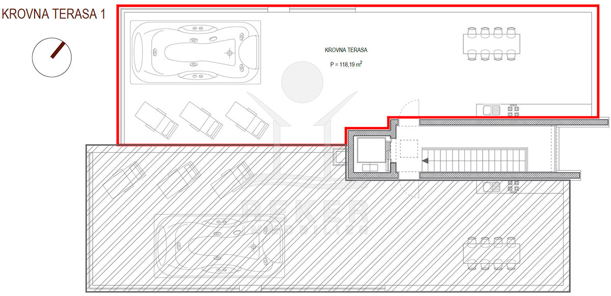 Die Dachterrasse erstreckt sich über großzügige 118 m² und bietet einen atemberaubenden Panoramablick, der sprachlos macht. Ein wahrhaftiger Ort der Erholung und Entspannung, perfekt für gesellige Zusammenkünfte oder stille Momenten inmitten der malerischen Umgebung.