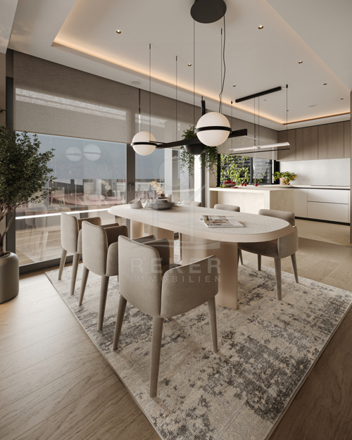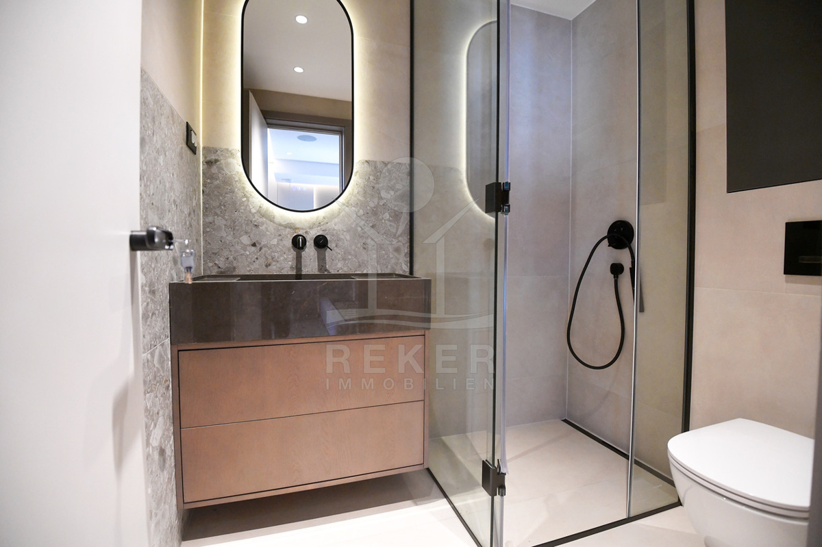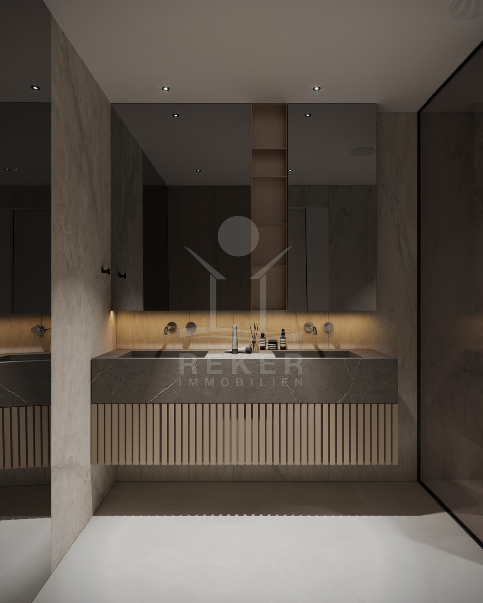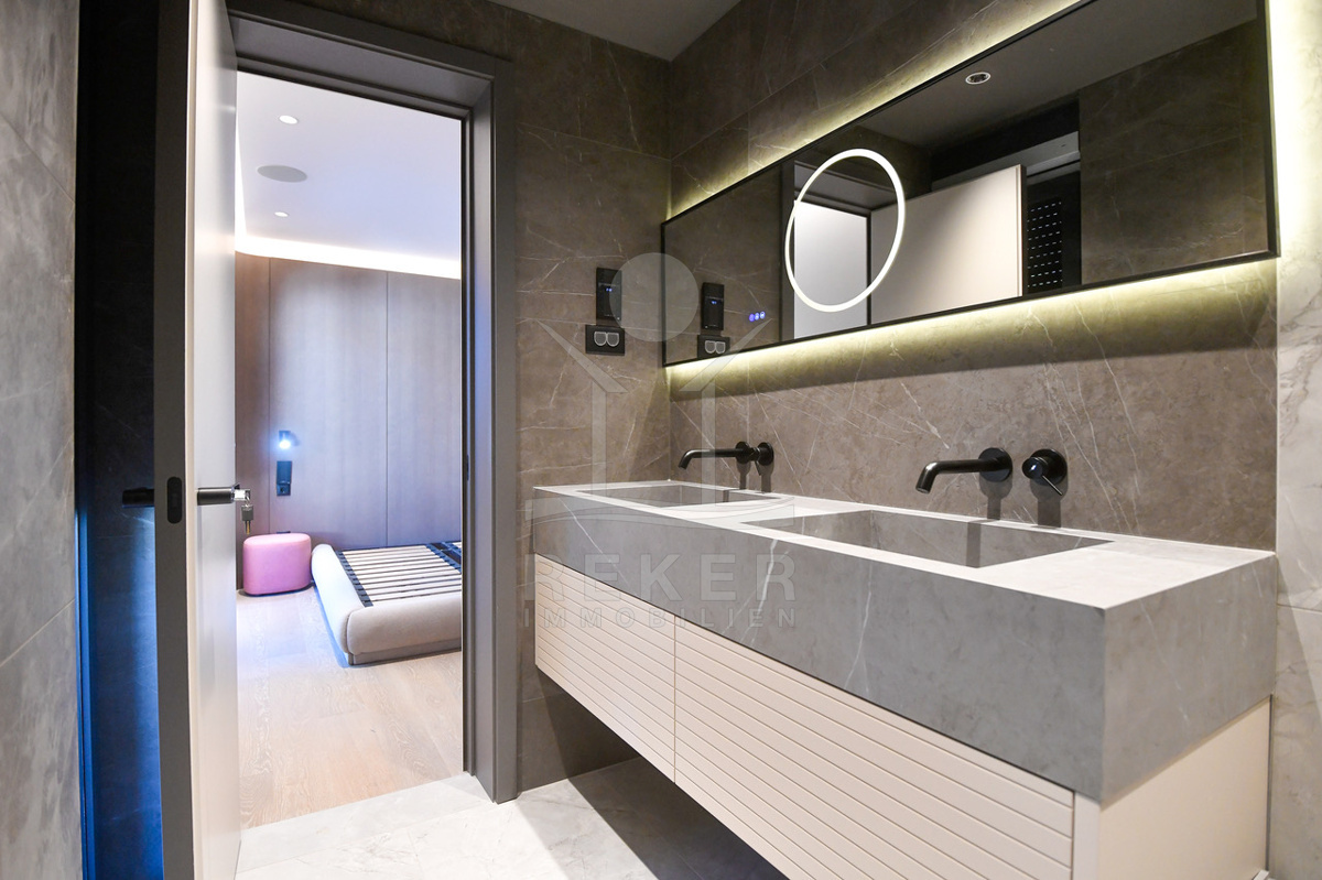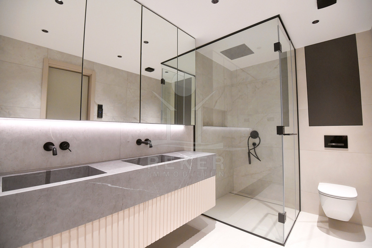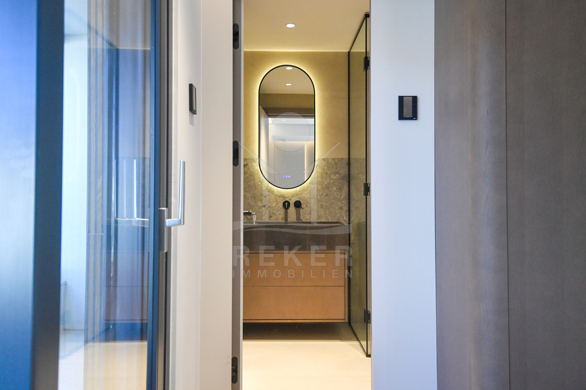 Drei Ebenen. Ein Gefühl. Dieses Penthouse ist kein Kompromiss – sondern eine Entscheidung für Stil, Komfort und Raum. Schon der Eingang: privat, mit Lift. Oben: eine Rooftop-Lounge mit Whirlpool, 80 m² Terrasse, Ausblick bis zum Horizont. Unten: 3 Schlafzimmer, 3 Bäder, Ankleide, Hauswirtschaftsraum – alles komplett eingerichtet und durchdacht.