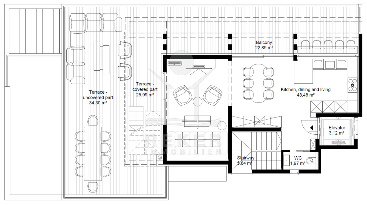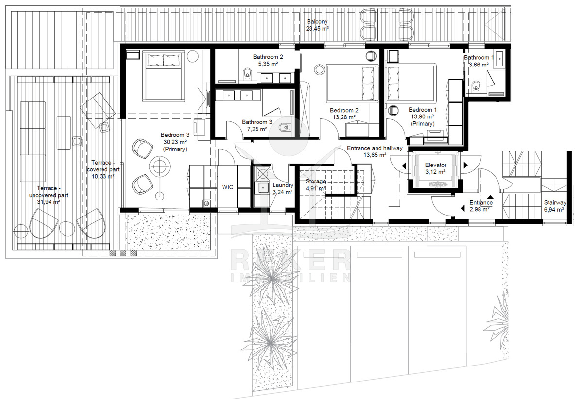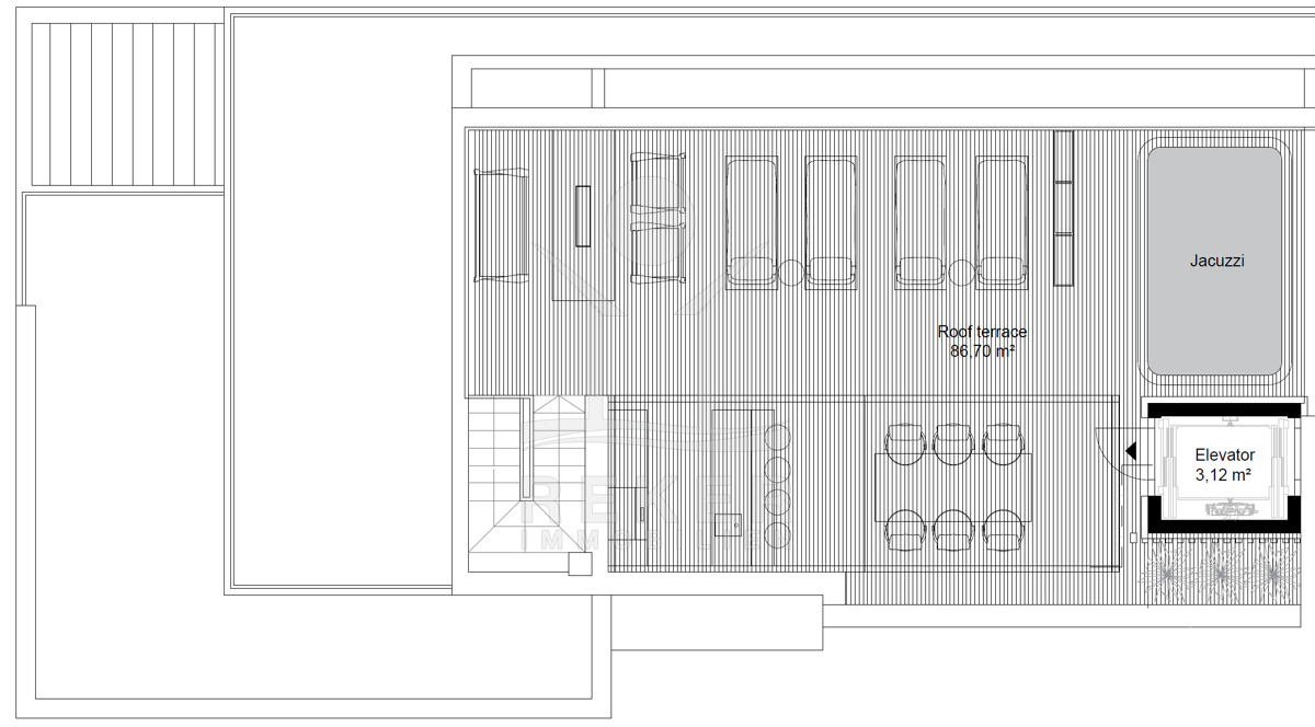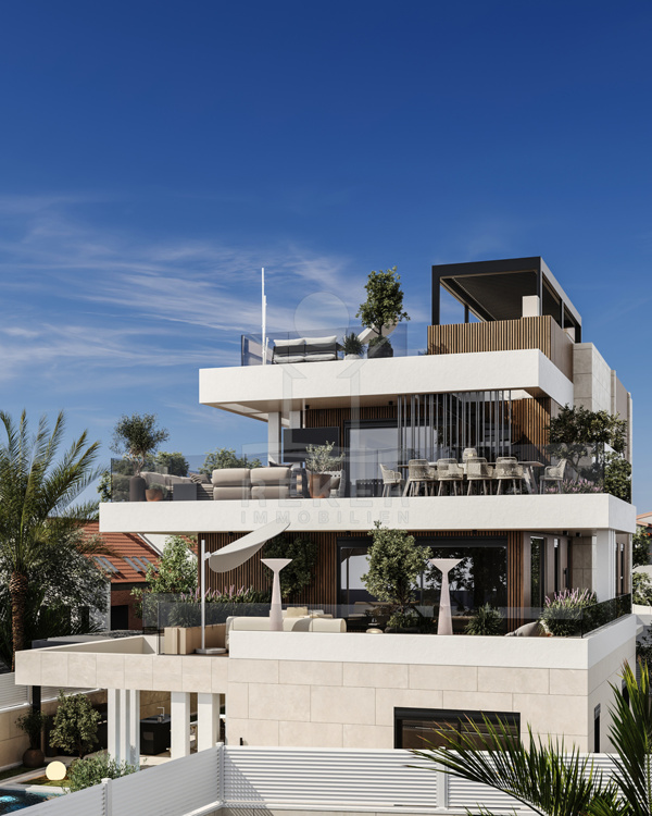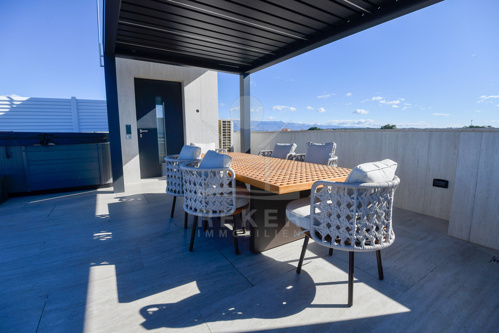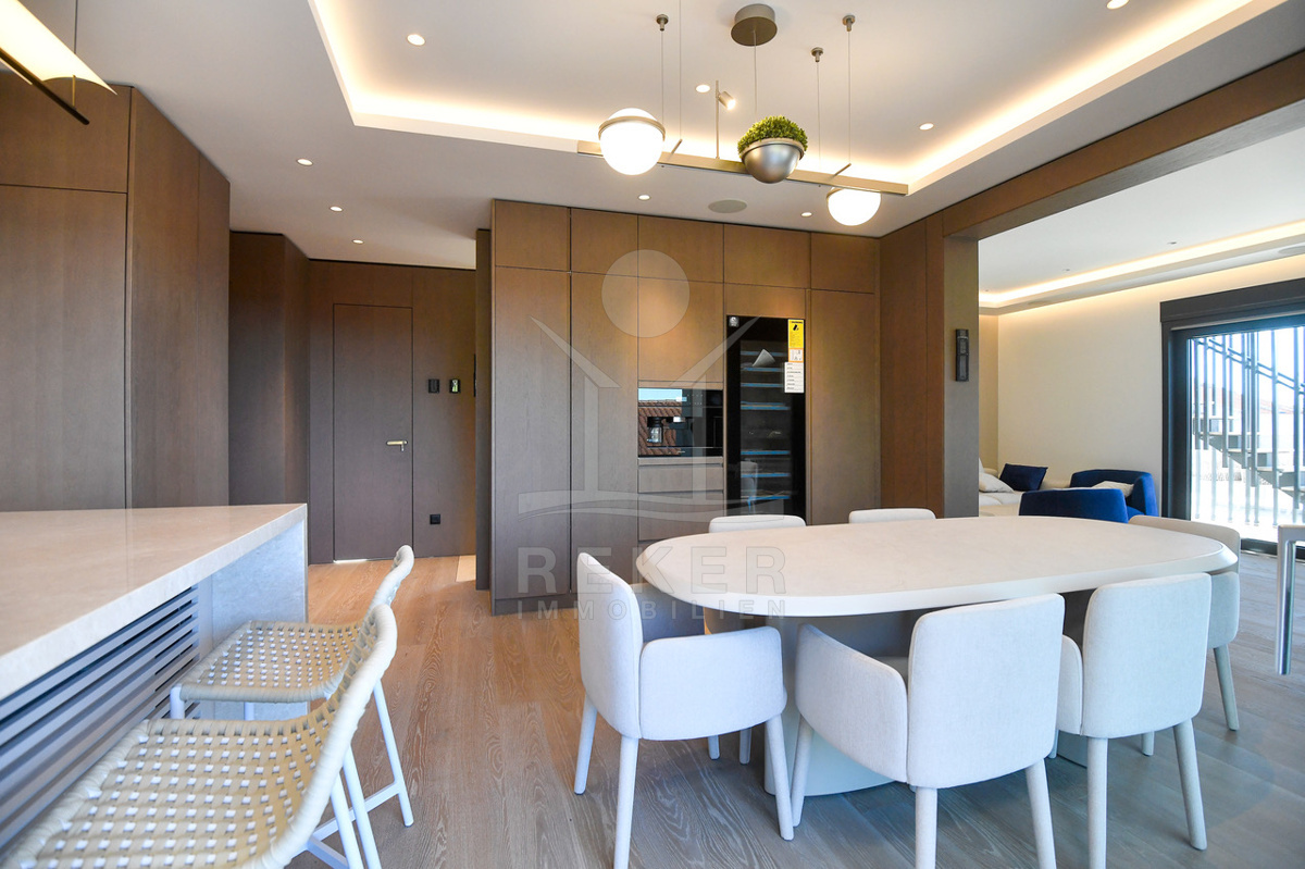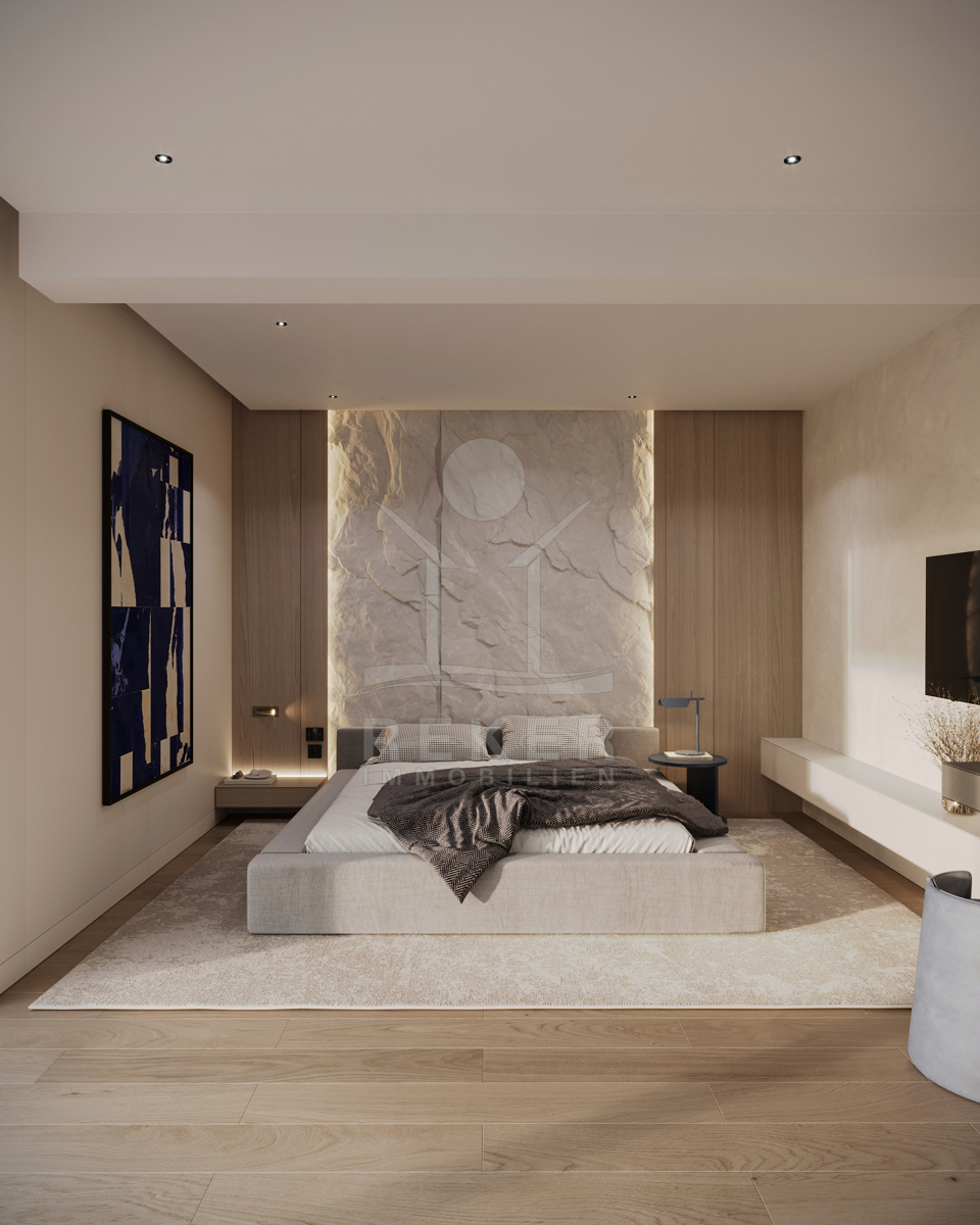Drei Ebenen. Ein Gefühl. Dieses Penthouse ist kein Kompromiss – sondern eine Entscheidung für Stil, Komfort und Raum. Schon der Eingang: privat, mit Lift. Oben: eine Rooftop-Lounge mit Whirlpool, 80 m² Terrasse, Ausblick bis zum Horizont. Unten: 3 Schlafzimmer, 3 Bäder, Ankleide, Hauswirtschaftsraum – alles komplett eingerichtet und durchdacht.
