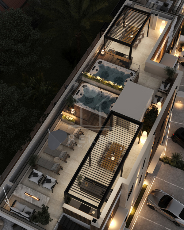 Und dann ist da noch das Highlight ganz oben: die private Dachterrasse. Whirlpool, Outdoor-Lounge, Esstisch, Meerblick. Mehr Rückzugsort geht nicht. Perfekt für ruhige Stunden oder unvergessliche Abende mit Freunden.