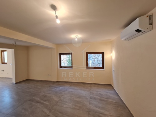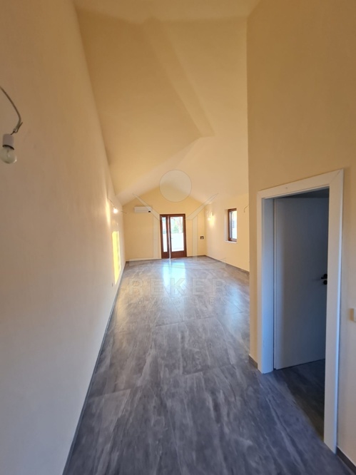 Das Haus ist mit einer Klimaanlage ausgestattet und bietet im Erdgeschoss (65 m²) eine Küche, ein Wohnzimmer mit Essbereich, ein Schlafzimmer und ein Badezimmer.