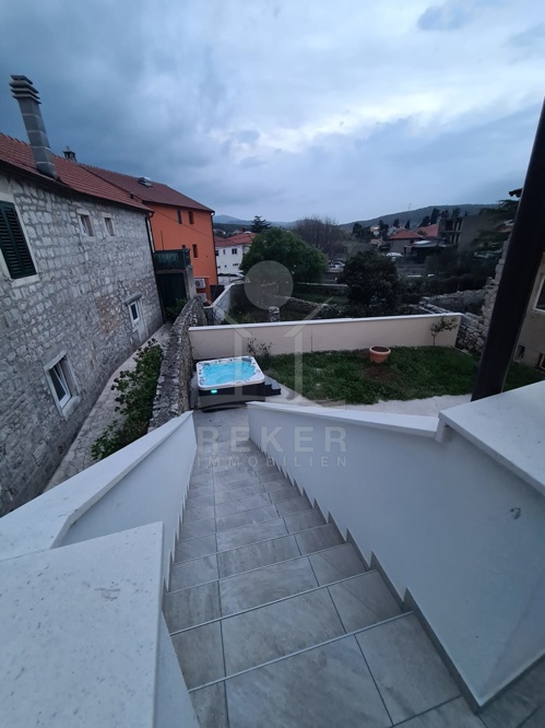 Das neu erbaute Reihenhaus befindet sich nur wenige Schritte vom Meer entfernt auf der malerischen Insel Hvar in Jelsa. Die Stadt Jelsa besticht mit ihrem charmanten Hafen, den typisch dalmatinischen Steinhäusern und der imposanten Pfarrkirche Maria Himmelfahrt. Die Lage in der Mitte der Insel bietet eine Vielzahl von traumhaften Stränden, darunter der beliebte Sandstrand Mina oder die idyllischen Buchten in der Umgebung. Aktivurlauber kommen hier ebenso auf ihre Kosten wie Genießer der mediterranen Küche und der exzellenten Weine. Zahlreiche Restaurants, Konobas und Weinbars laden dazu ein, die kulinarischen Köstlichkeiten der Region zu entdecken. Abwechslungsreiche Freizeitmöglichkeiten und ein lebhaftes Nachtleben runden das Angebot von Jelsa perfekt ab. Wer eine Mischung aus belebten Sandstränden und romantischen Buchten sucht, wird in Jelsa fündig und kann das mediterrane Lebensgefühl in vollen Zügen genießen.