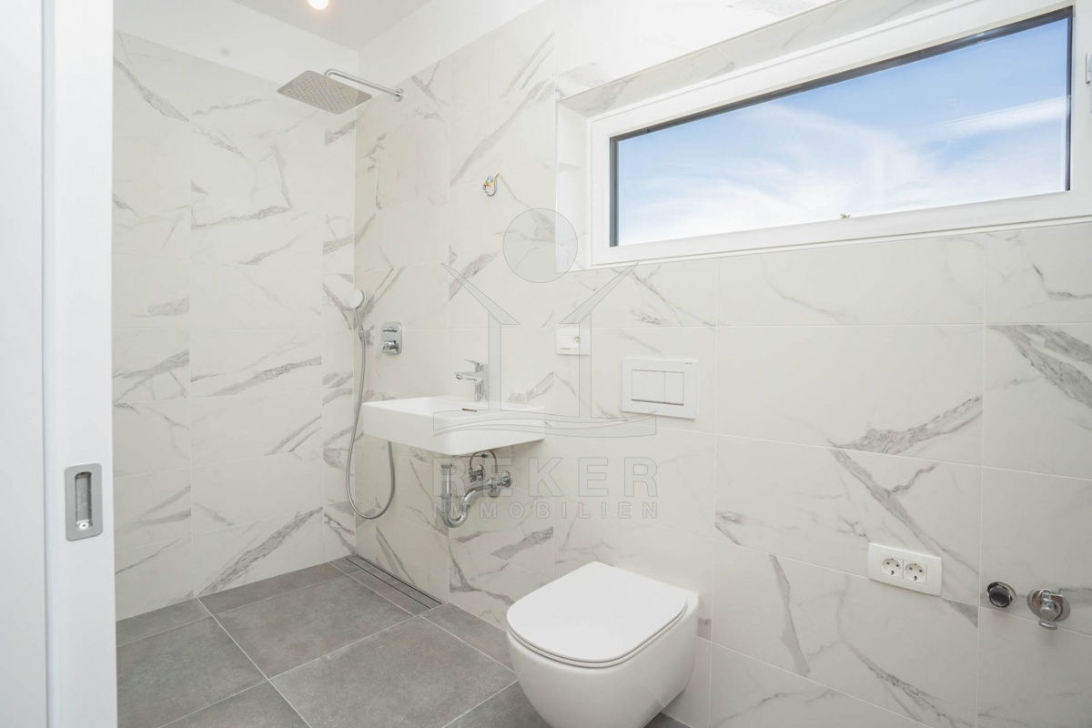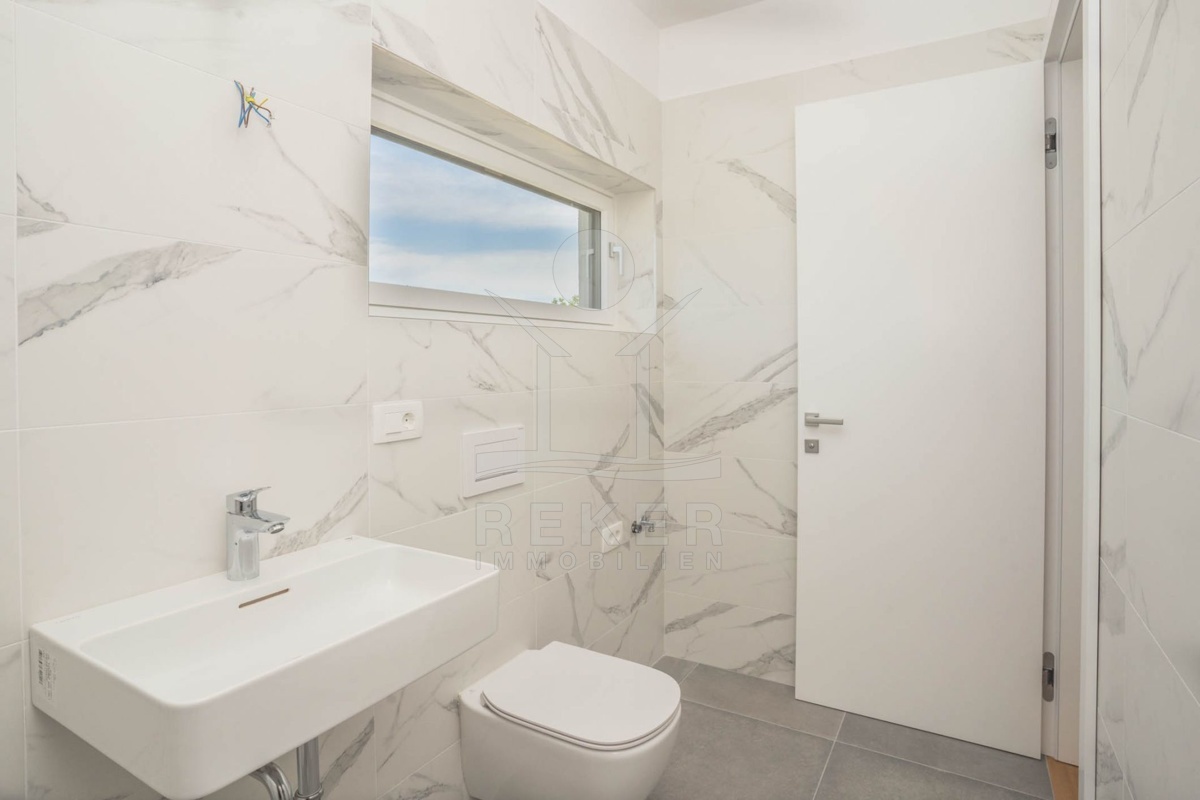 Der Neubau in Kornić auf der Insel Krk bieten die perfekte Mischung aus Komfort und natürlicher Schönheit. Die Umgebung ist von landschaftlicher Schönheit geprägt und lädt zum entspannten Wohnen ein. Mit allen Annehmlichkeiten und Restaurants in der Nähe ist der Alltag bequem zu bewältigen. Das Meer ist nur 1,5 km entfernt, und die unberührten Strände und Buchten der Insel Krk sind schnell erreichbar. Kornić selbst ist ein charmantes Dorf mit reicher Geschichte und einzigartigem Flair, das durch Spaziergänge durch die engen Gassen entdeckt werden kann. Die Lage nahe an allen Annehmlichkeiten und den natürlichen Schönheiten der Insel Krk macht diese Immobilie zum idealen Ort, um das mediterrane Lebensgefühl in vollen Zügen zu genießen.