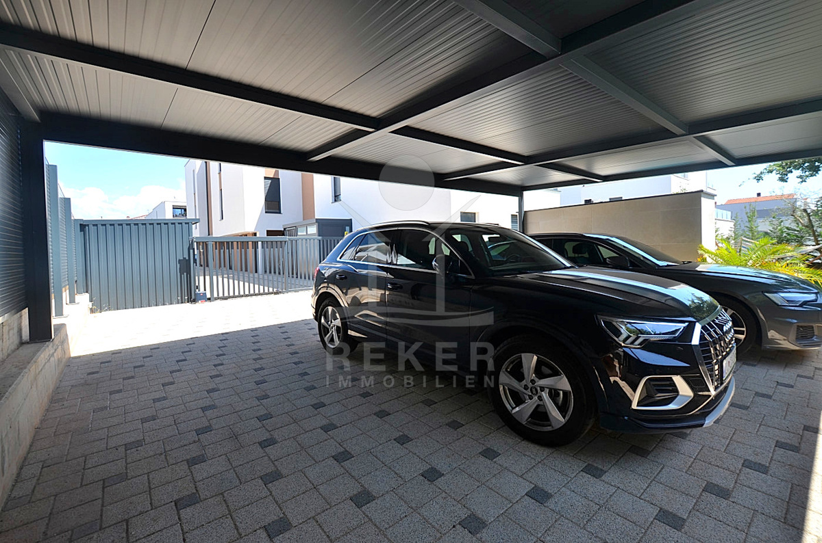 Auf dem großzügigen Hof befindet sich ein großes Carport mit Tor