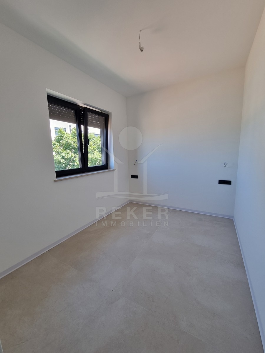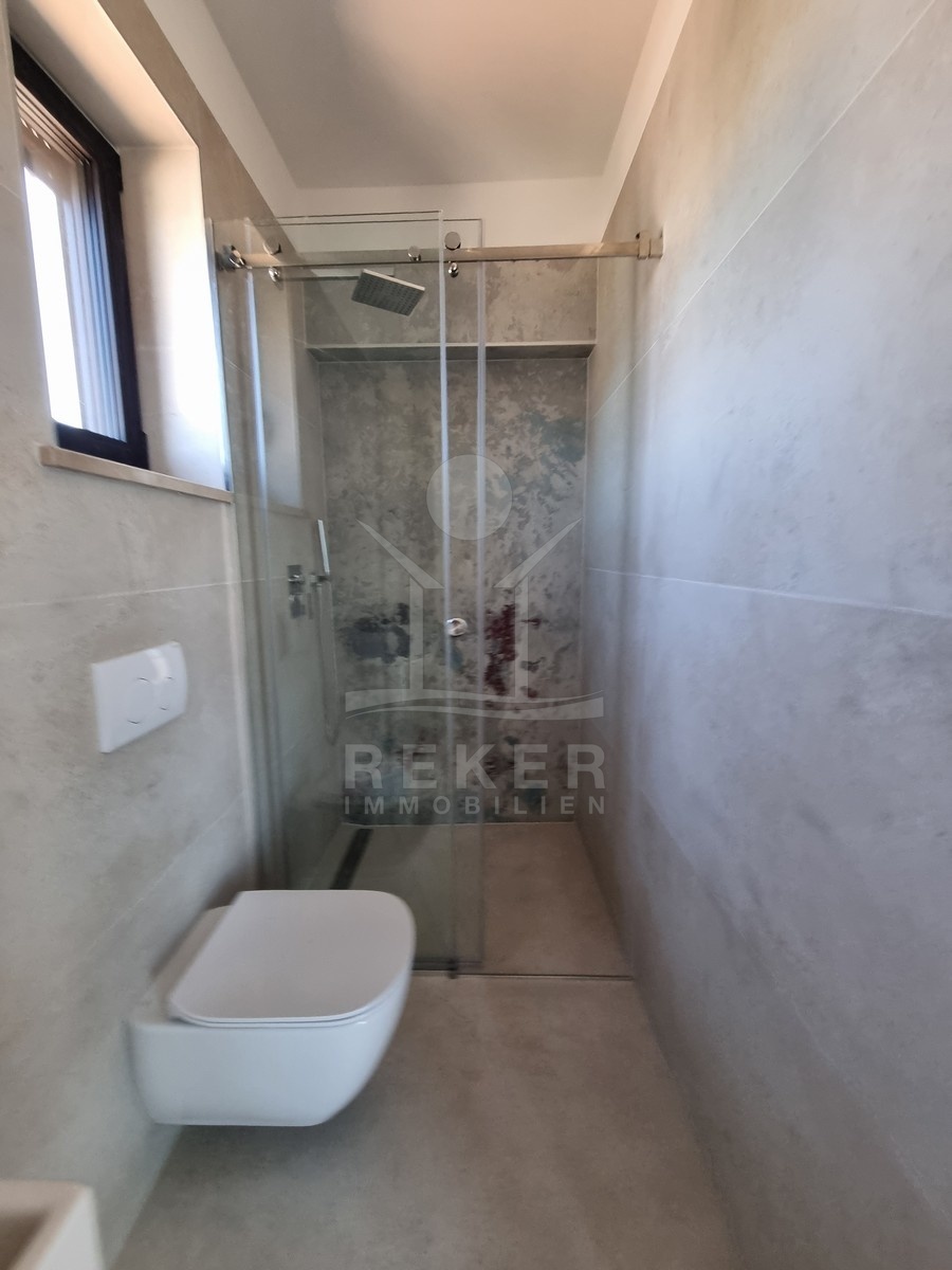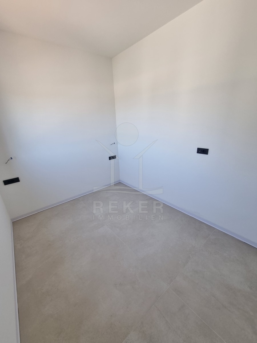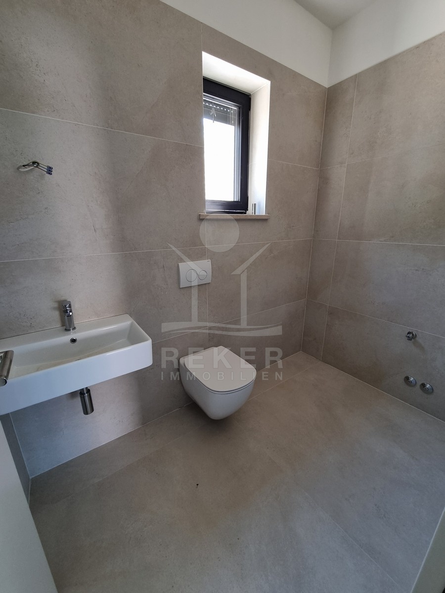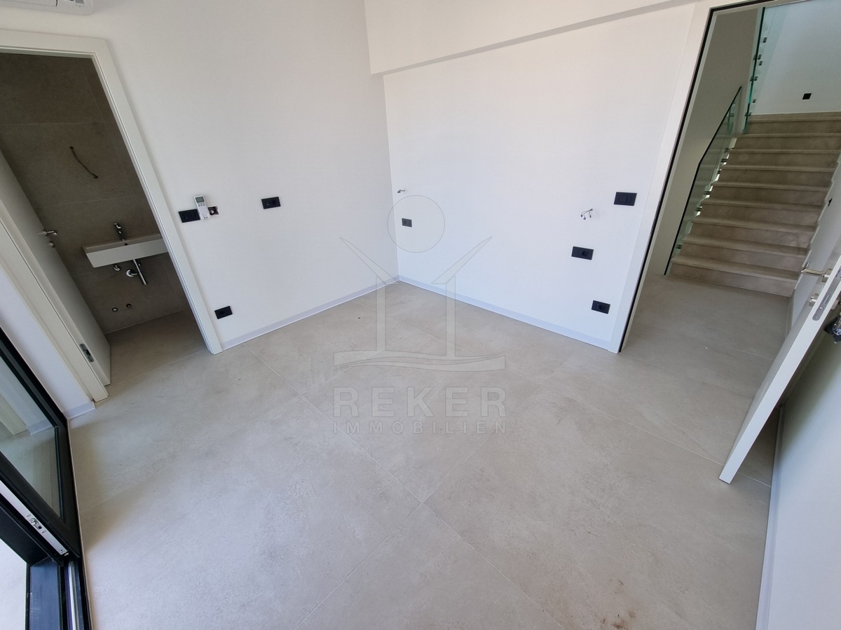 Nur einen Kilometer vom Meer entfernt, in einem ruhigen Teil von Poreč, steht dieses moderne Reihenhaus auf drei Etagen. Die Umgebung ist angenehm zurückgezogen, ohne Durchgangsverkehr. Zwei private Stellplätze gehören dazu – direkt am Haus, ganz ohne Parkplatzsuche.
