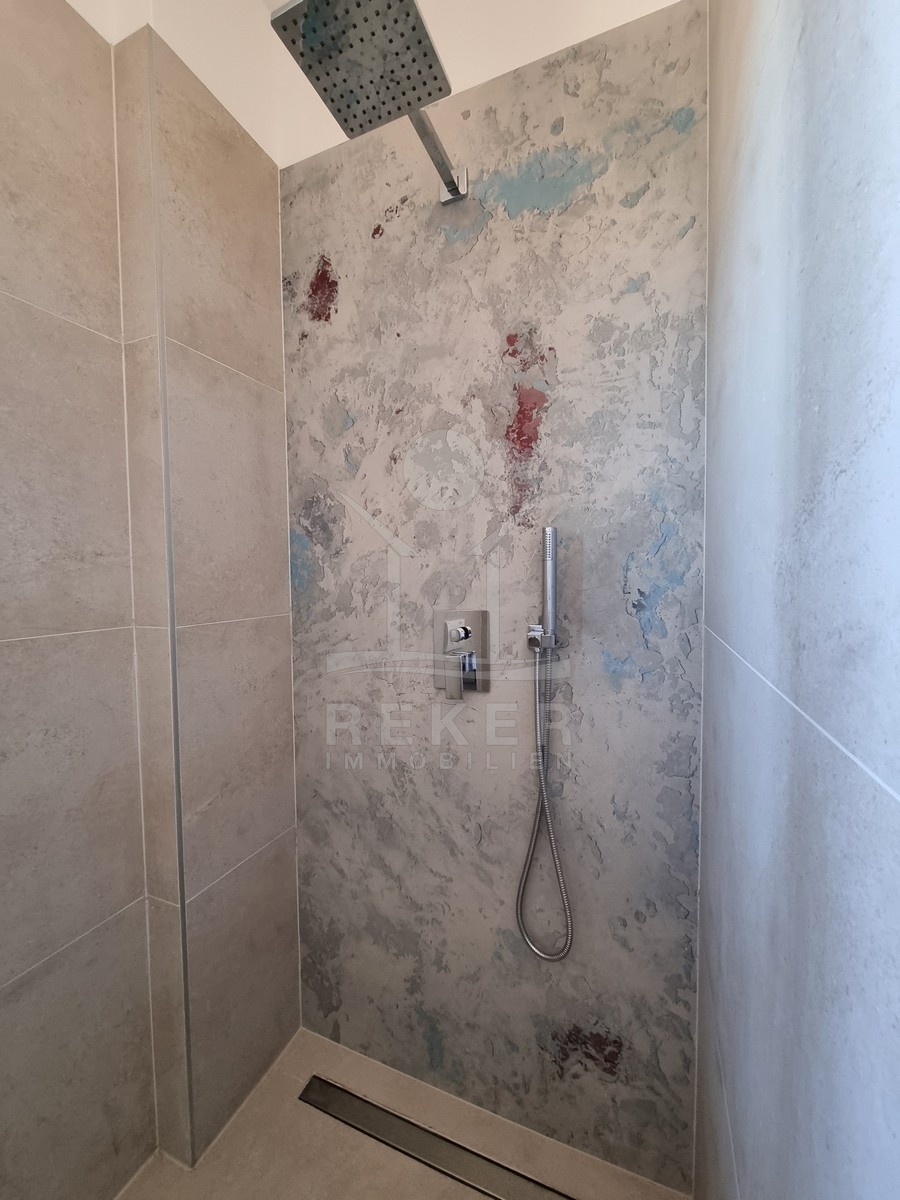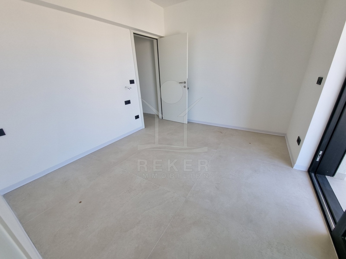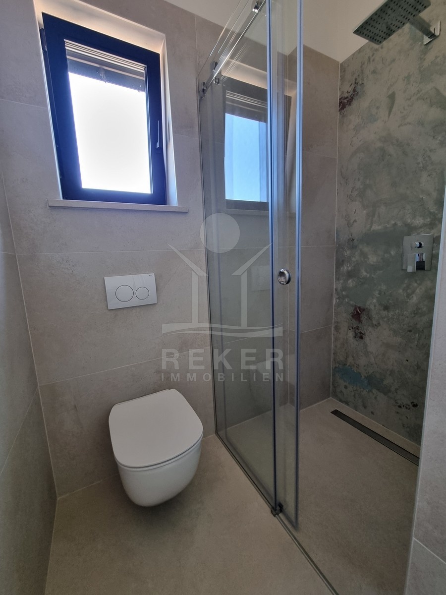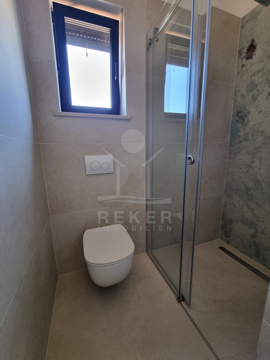 Nur einen Kilometer vom Meer entfernt, in einem ruhigen Teil von Poreč, steht dieses moderne Reihenhaus auf drei Etagen. Die Umgebung ist angenehm zurückgezogen, ohne Durchgangsverkehr. Zwei private Stellplätze gehören dazu – direkt am Haus, ganz ohne Parkplatzsuche.