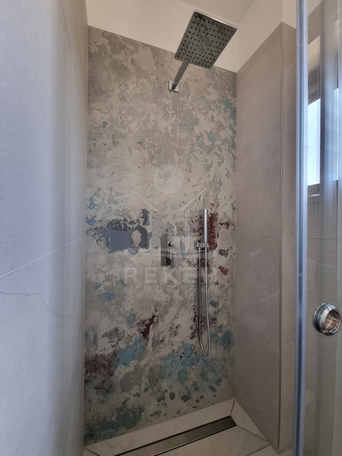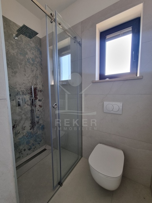 Im Erdgeschoss erwartet Sie ein großzügiger Wohnbereich mit offener Küche, Essplatz und Zugang in den Garten. Gleich daneben: ein separates WC und ein Abstellraum. Über die Innentreppe gelangen Sie in die oberen Etagen – jede mit eigenem Charakter. Im ersten Stock: zwei Schlafzimmer mit je eigenem Bad und Zugang zum Balkon. Im zweiten Stock: ein weiteres Schlafzimmer mit Meerblick. Highlight hier: der Whirlpool auf dem Balkon. Der Blick? Weit übers Meer – ein täglicher Moment zum Durchatmen.