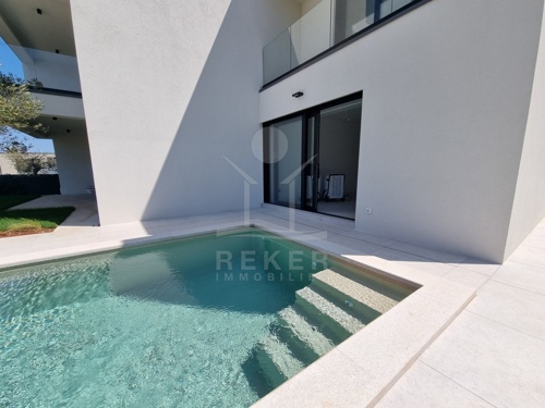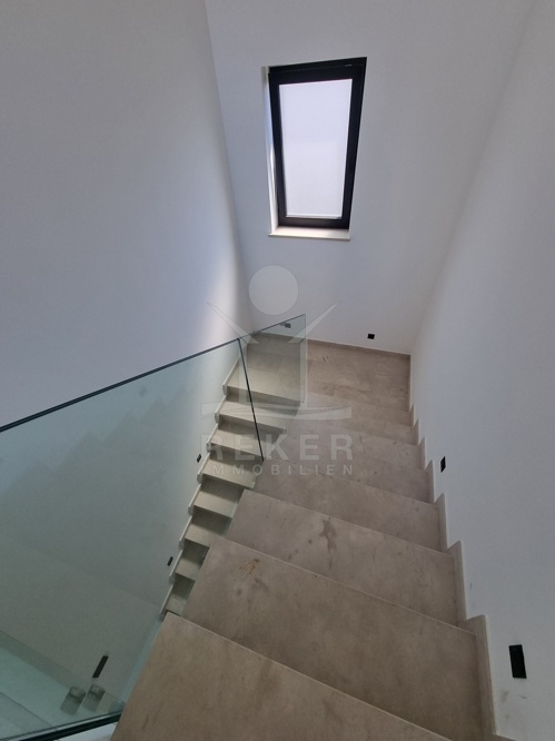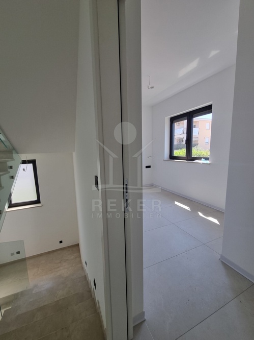 Im ruhigen Stadtteil von Poreč, nur einen kurzen Spaziergang vom Meer entfernt, steht dieses moderne Reihenhaus mit drei Etagen. Die Lage ist ideal für alle, die es ruhig mögen und gleichzeitig die Nähe zur Küste schätzen. Zwei private Stellplätze befinden sich direkt vor dem Haus.