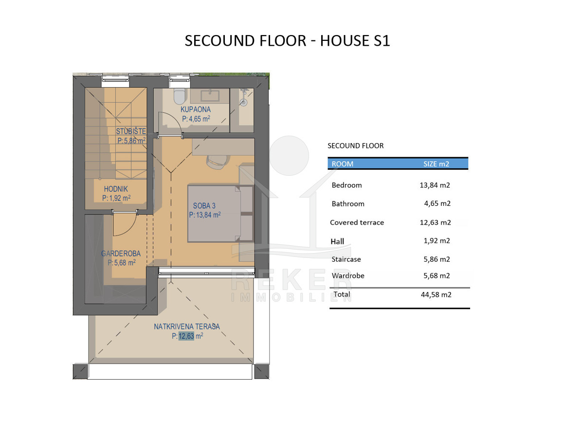 Auf 137 m² Wohnfläche verteilen sich drei Etagen mit sinnvoller Raumaufteilung. Im Erdgeschoss befinden sich der Eingangsbereich, der offene Wohn- und Essbereich mit Küche, eine Gästetoilette und eine Waschküche. Im ersten Stock liegen zwei Schlafzimmer und ein modernes Bad. Das zweite Obergeschoss bildet den privaten Rückzugsort: ein Hauptschlafzimmer mit eigenem Bad, begehbarem Kleiderschrank und überdachter Terrasse mit 12,63 m². Große Fensterflächen bringen Licht und Offenheit in alle Räume.