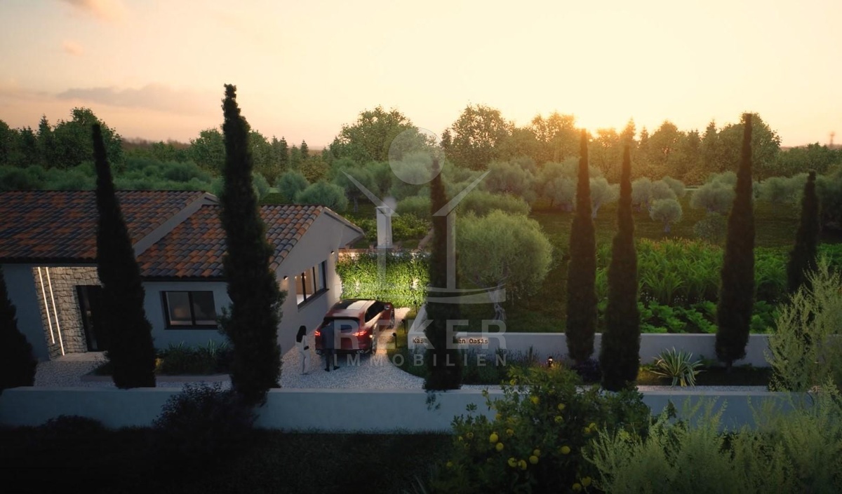 In einer ruhigen, grünen Gegend Istriens, rund 12 Kilometer von Poreč und etwa 6 Kilometer vom Meer entfernt, entsteht ein moderner Reihenhauskomplex mit drei Wohneinheiten. Hier erleben Sie das Beste aus zwei Welten: die Nähe zur Küste und die Stille des istrischen Hinterlands. Vor jedem Haus steht ein eigener Parkplatz, bequem und praktisch zugleich.