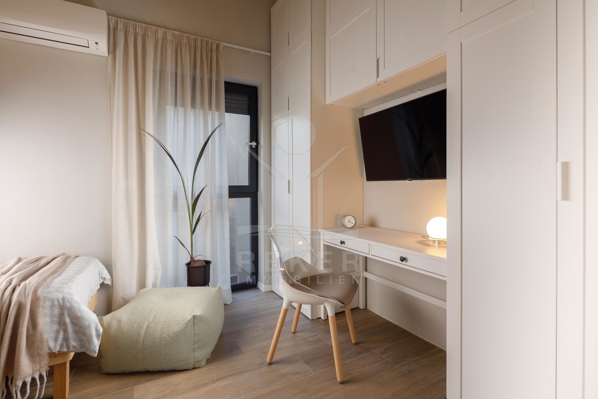 Der Neubau befindet sich in der Nähe der bezaubernden Stadt Poreč und besticht durch sein zeitgemäßes Design. Hier können Sie in einer ruhigen Umgebung entspannen und die Schönheit der Region genießen. Die Nähe zum Meer, nur 950 Meter entfernt, lädt zum Sonnenbaden und Schwimmen ein. Das lebendige Zentrum von Poreč ist nur 2 km entfernt und bietet zahlreiche kulturelle und Unterhaltungsmöglichkeiten. Ob es darum geht, die reiche Geschichte der Stadt zu entdecken oder die Restaurants und Geschäfte zu erkunden, Langeweile kommt hier bestimmt nicht auf. Die ideale Lage des Reihenhauses ermöglicht es Ihnen, die Region bequem zu erkunden und gleichzeitig ein ruhiges und komfortables Zuhause zu genießen.