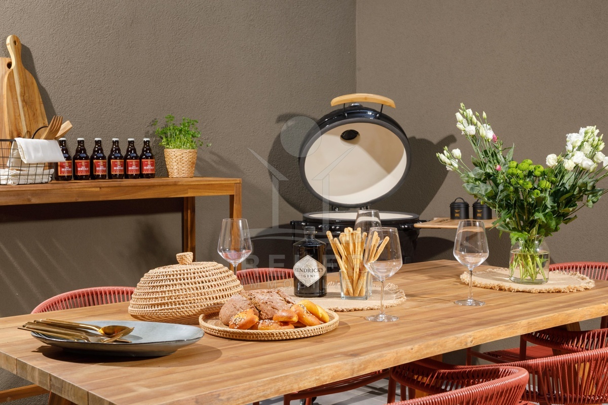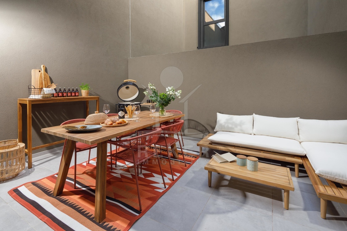 Das Haus ist mit Klimaanlage ausgestattet und wird voll möbliert verkauft. Die großen Glasfenster lassen die Räume im Haus mit Sonnenlicht durchfluten und schaffen eine einladende Atmosphäre. Im Erdgeschoss befinden sich ein geräumiges Wohnzimmer, eine moderne Küche, ein gemütliches Esszimmer und ein Gäste-WC.