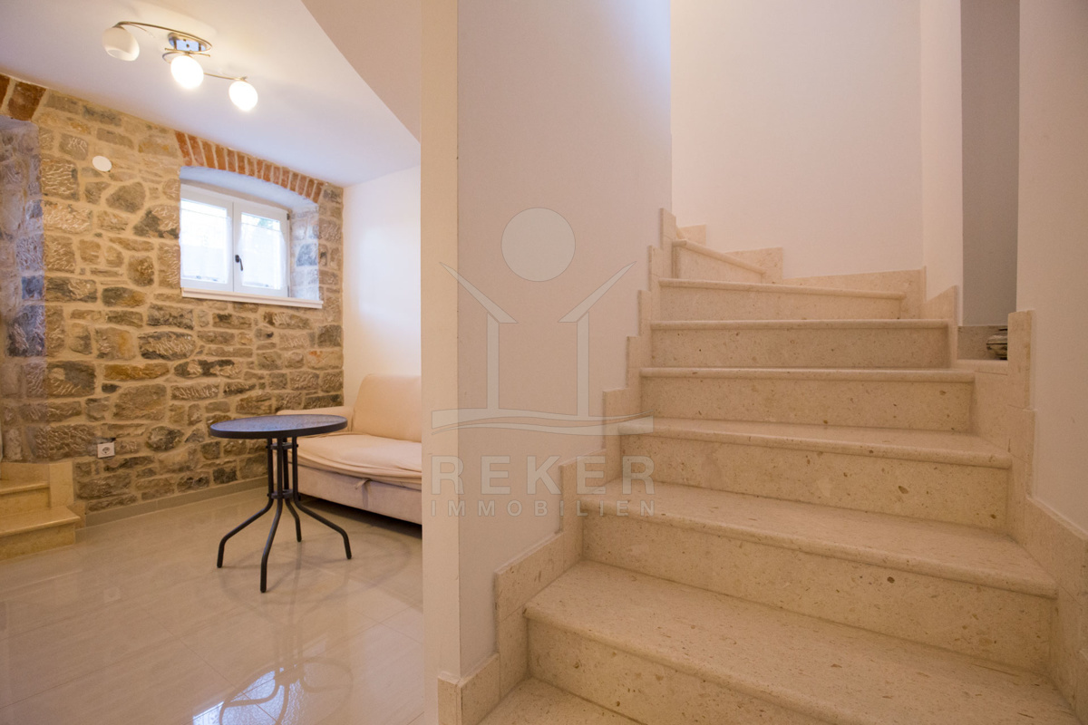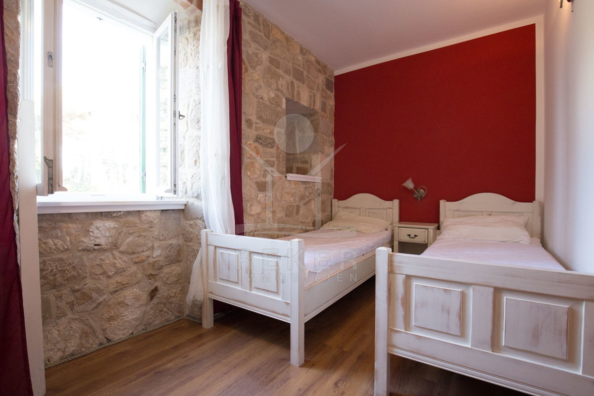 Steinwände strotzen vor kroatischem Charme und ergänzen das Wohlfühl-Ambiente. Im Erdgeschoss finden Sie ein Wohnzimmer, eine Küche mit Esszimmer, ein Badezimmer und ein Schlafzimmer.