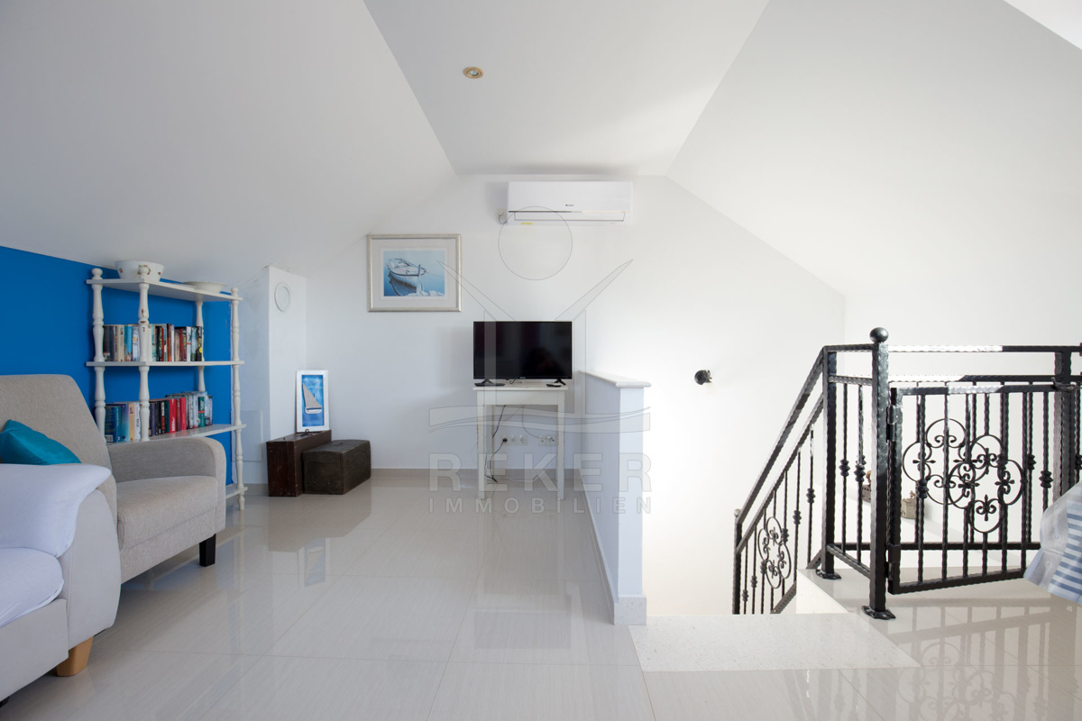 Freuen Sie sich auf eine 2013 vollständig renovierte Wohlfühl-Oase, die 102 m² Wohnfläche und einen Balkon mit fantastischem Meerblick beinhaltet. Die Wohnfläche verteilt sich auf 3 Stockwerke.